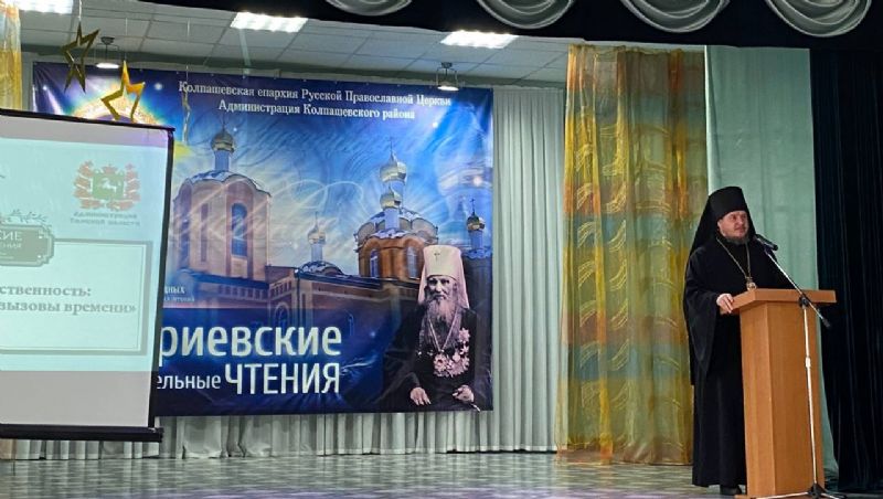 После исполнения тропарей святителю Тихону и святителю Макарию (Невскому), покровителю Томской земли, с приветственными словами к аудитории обратились Глава Колпашевского района Антон Борисович Агеев и епископ Колпашевский и Стрежевской Филарет.
