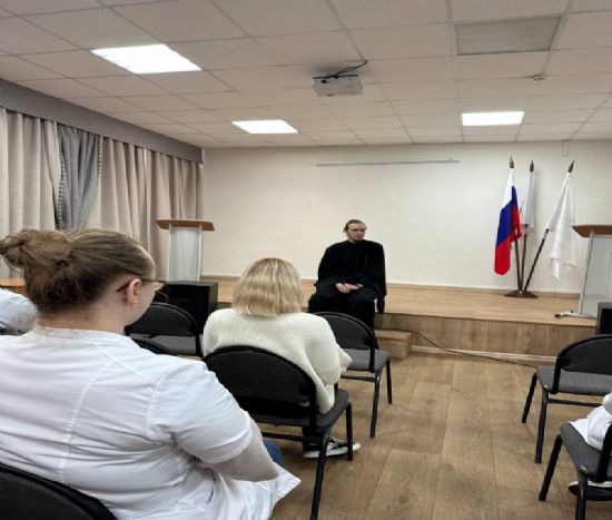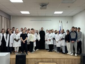 1 декабря 2025 года, клирик Вознесенского кафедрального собора г. Колпашево иеродиакон Макарий (Башкловкин) в актовом зале Колпашевского филиала Томского базового медицинского колледжа провел очередную беседу на тему «Смысл жизни: Христос — как образ истинной Жизни».