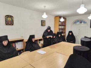 В ходе работы конференции прозвучали подготовленные доклады: монахиня Амвросия (Кучанская) сделала краткое сообщение на тему «Что такое нравственность по святым отцам?», а послушница Ольга Паскал – на тему «Что такое просвещение по святым отцам?». Игумен Серафим прокомментировал оба сообщения, дополнив их важными святоотеческими смыслами.