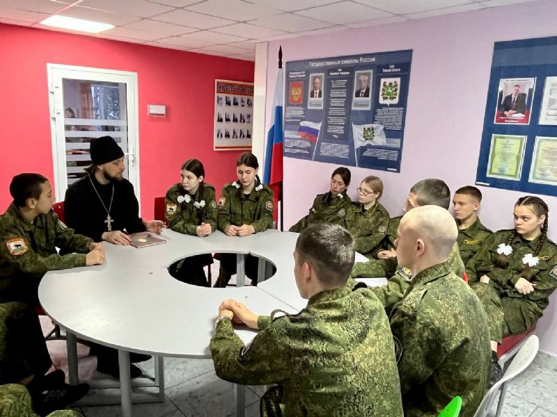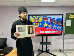 5 декабря клирик храма Воскресения Христова с. Тогур иерей Георгий Полевщиков в преддверии Дня Героев России, который в нашей стране отмечается 9 декабря, провел духовно-нравственные уроки для старшеклассников Колпашевского кадетского корпуса на тему «Герои России и святость».