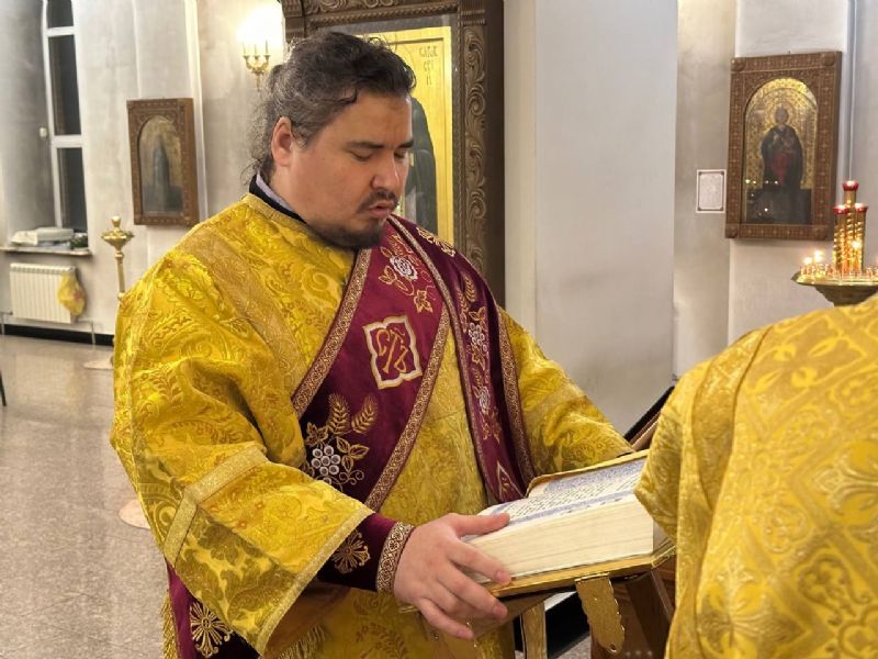 В Никольском соборе г. Стрежевого вечернее Новогоднее молебное пение и ночную Божественную литургию возглавил настоятель храма, благочинный Северного округа, секретарь Колпашевской епархии иерей Иоанн Усачев в сослужении ключаря собора иерея Александра Хохлова.