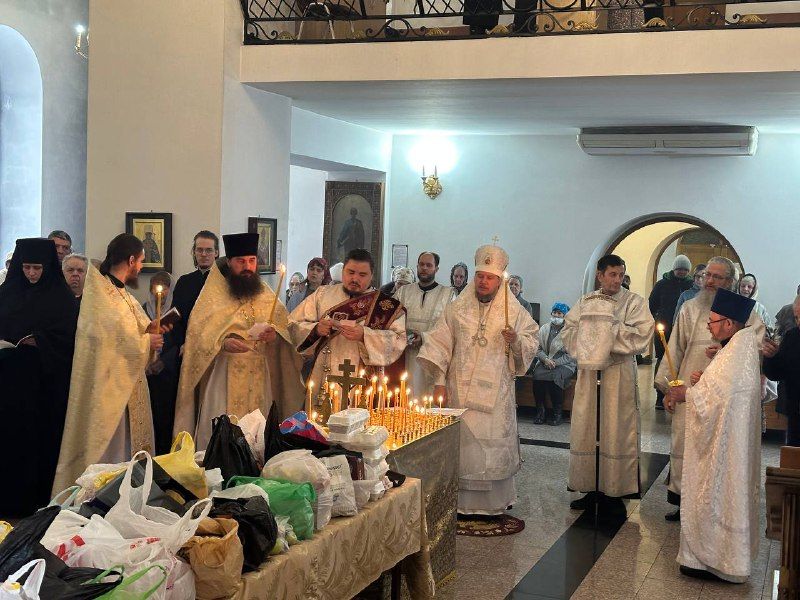 Накануне вечером было совершено вечернее богослужение с Парастасом.