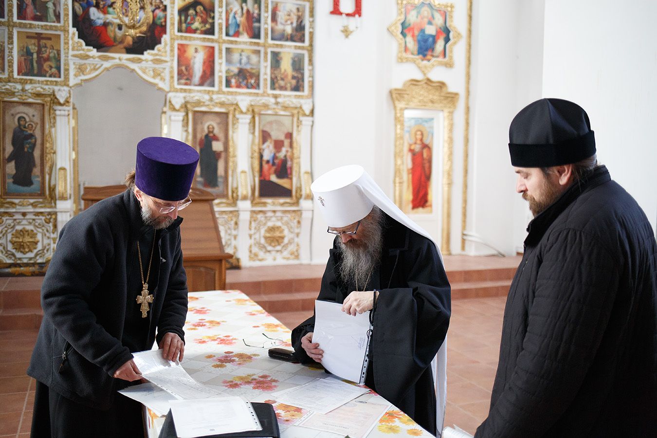 Его Высокопреосвященству сослужили благочинный Томского района, настоятель Владимирского храма г. Северска протоиерей Дионисий Степанов, настоятель храма Покрова Пресвятой Богородицы с. Моряковский Затон иерей Сергий Моисеев, настоятель храма святого благоверного князя Александра Невского г. Томска протоиерей Сергий Никаноров и ключарь Богоявленского собора г. Томска иерей Олег Огнёв.