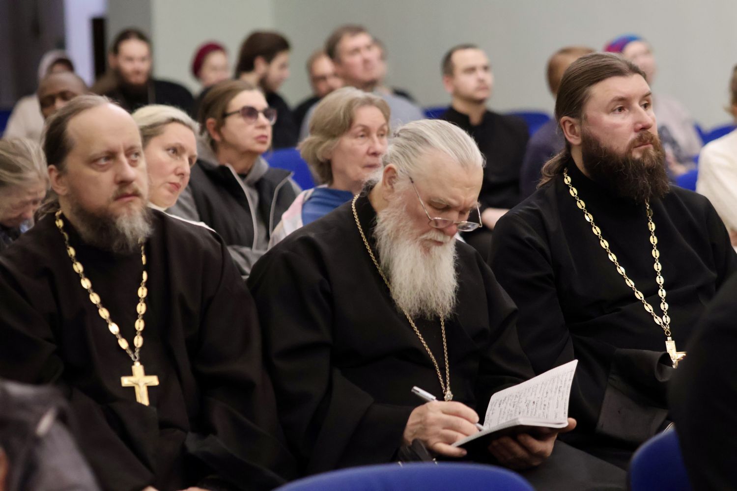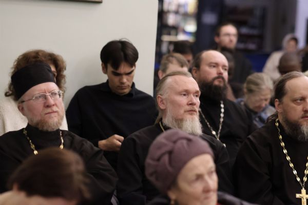 Несмотря на насыщенный по мероприятиям день, на встречу с Александром Дворкиным пришли представители томского духовенства, многочисленные прихожане, а также студенты и преподаватели Томской духовной семинарии.