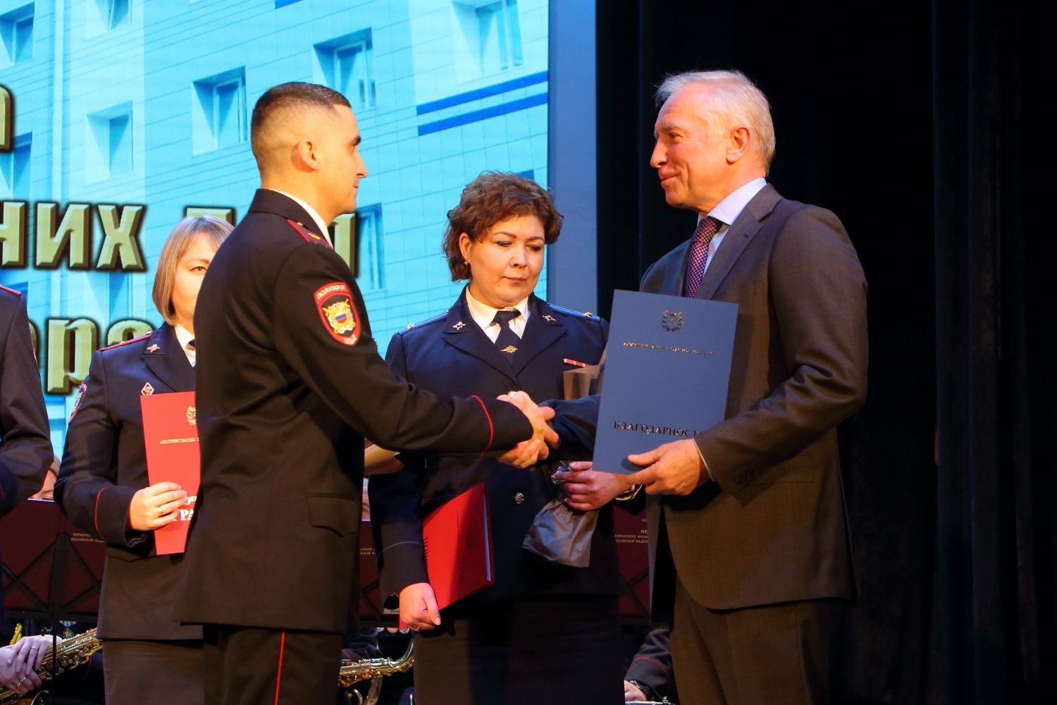 Губернатор Томской области Владимир Мазур поздравил томских полицейских с праздником и отметил, что служба в органах внутренних дел никогда не была легка, но славная томская школа милиции всегда славилась профессионализмом.