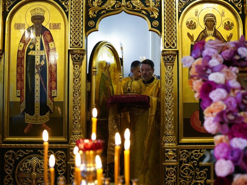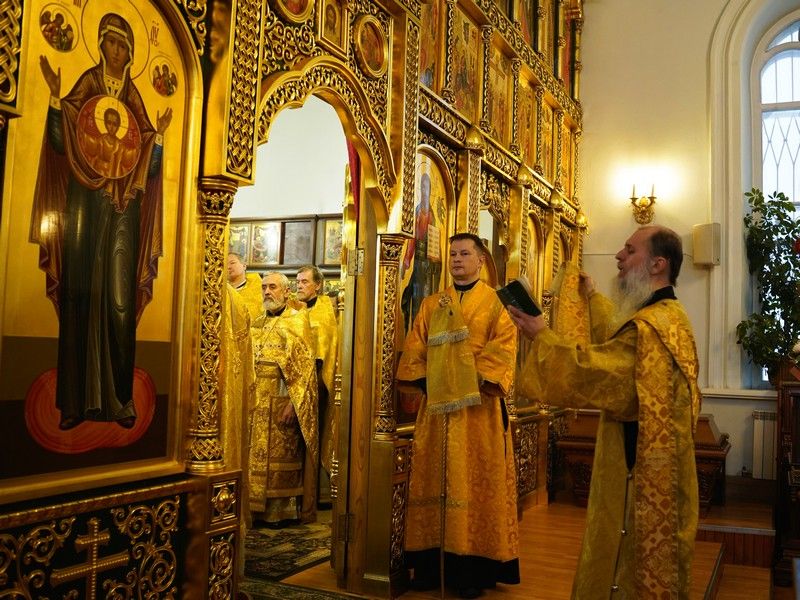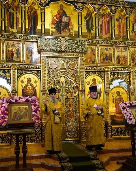 Диаконский чин возглавил протодиакон Владимир Марков. В честь престольного праздника вместе с приходским хором песнопения Литургии исполнял детский хор под управлением регента Ольги Сёминой.