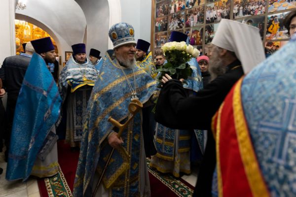 В своей проповеди митрополит Ростислав сердечно поздравил молящихся с престольным торжеством и юбилейной датой, подробно раскрывая духовное значение празднуемого события.