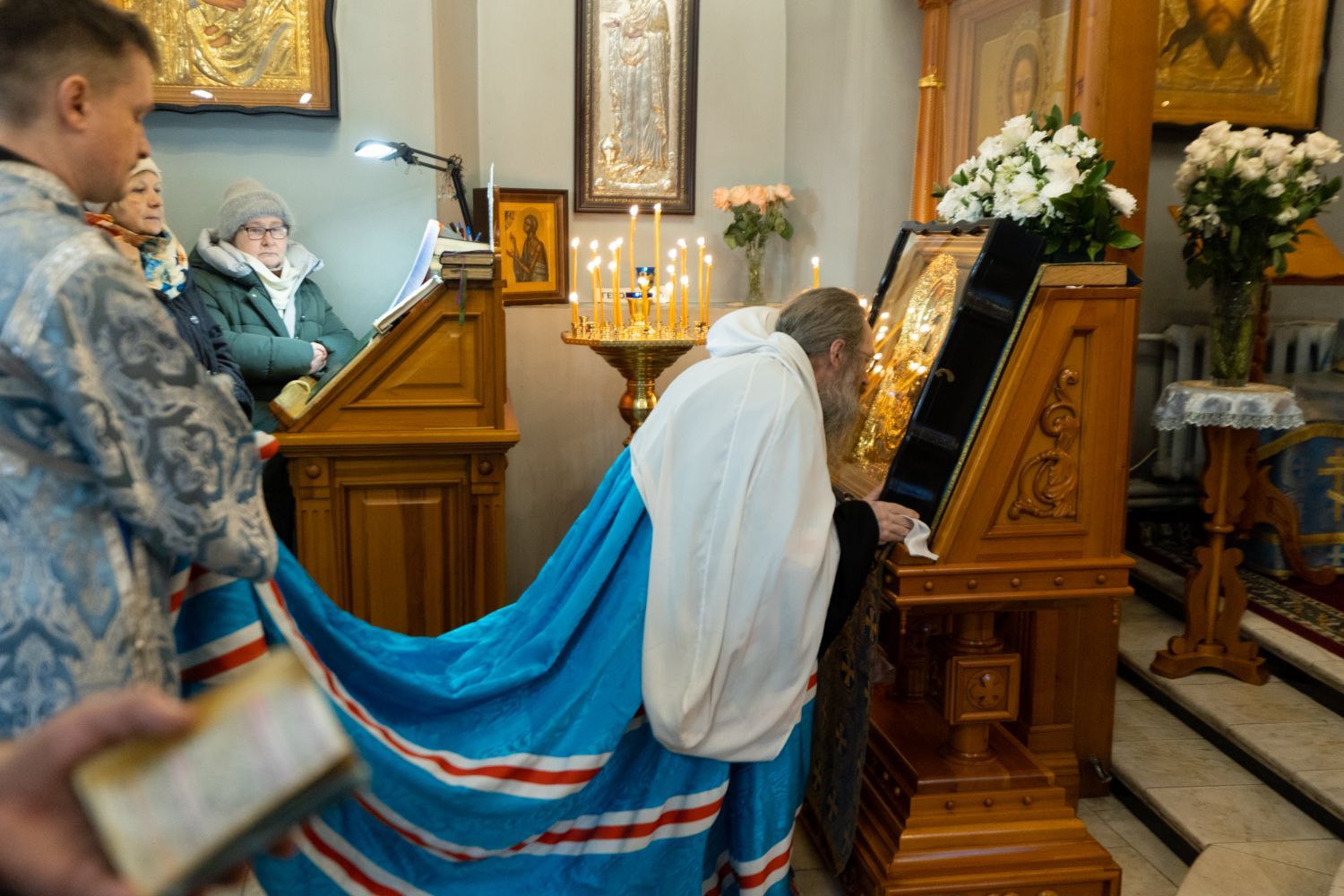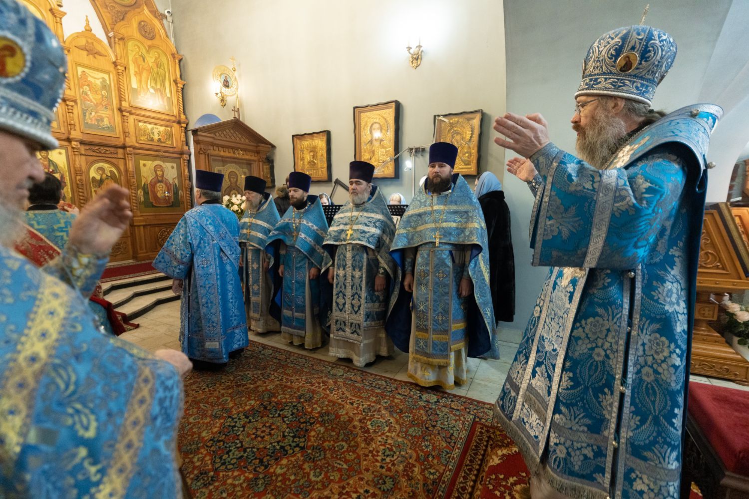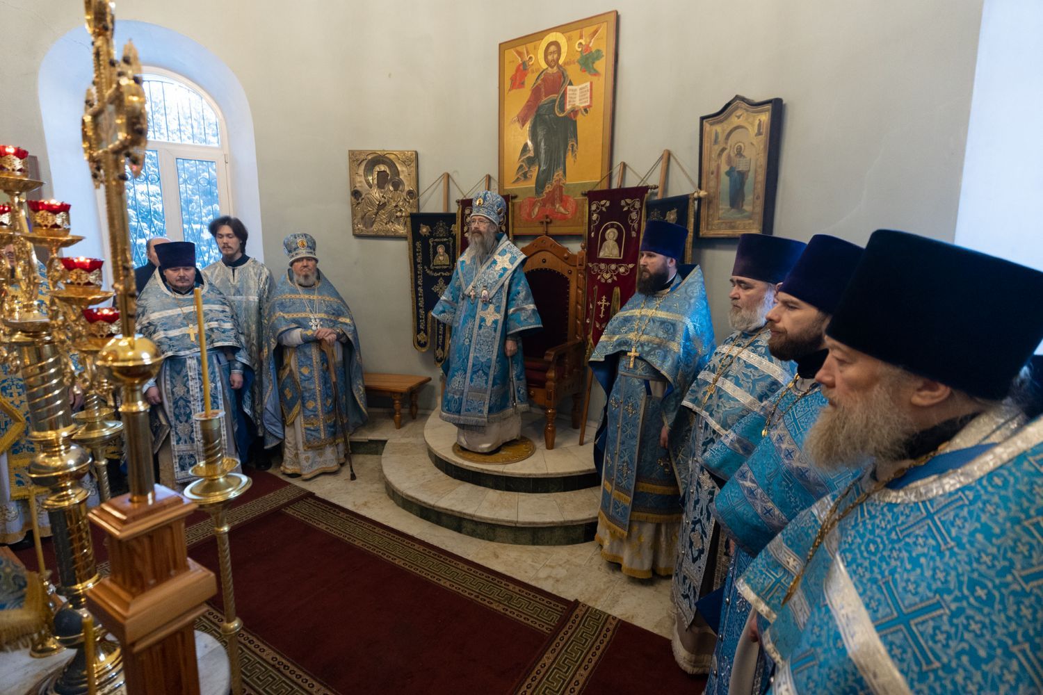 Его Высокопреосвященству сослужили: благочинный 1-го Градо-Томского благочиния, настоятель храма святого благоверного князя Александра Невского г. Томска протоиерей Сергий Никаноров, ключарь Богоявленского собора иерей Олег Огнёв, настоятель Знаменского храма протоиерей Николай Яськов и духовенство храма. Диаконский чин возглавил протодиакон Владимир Марков.