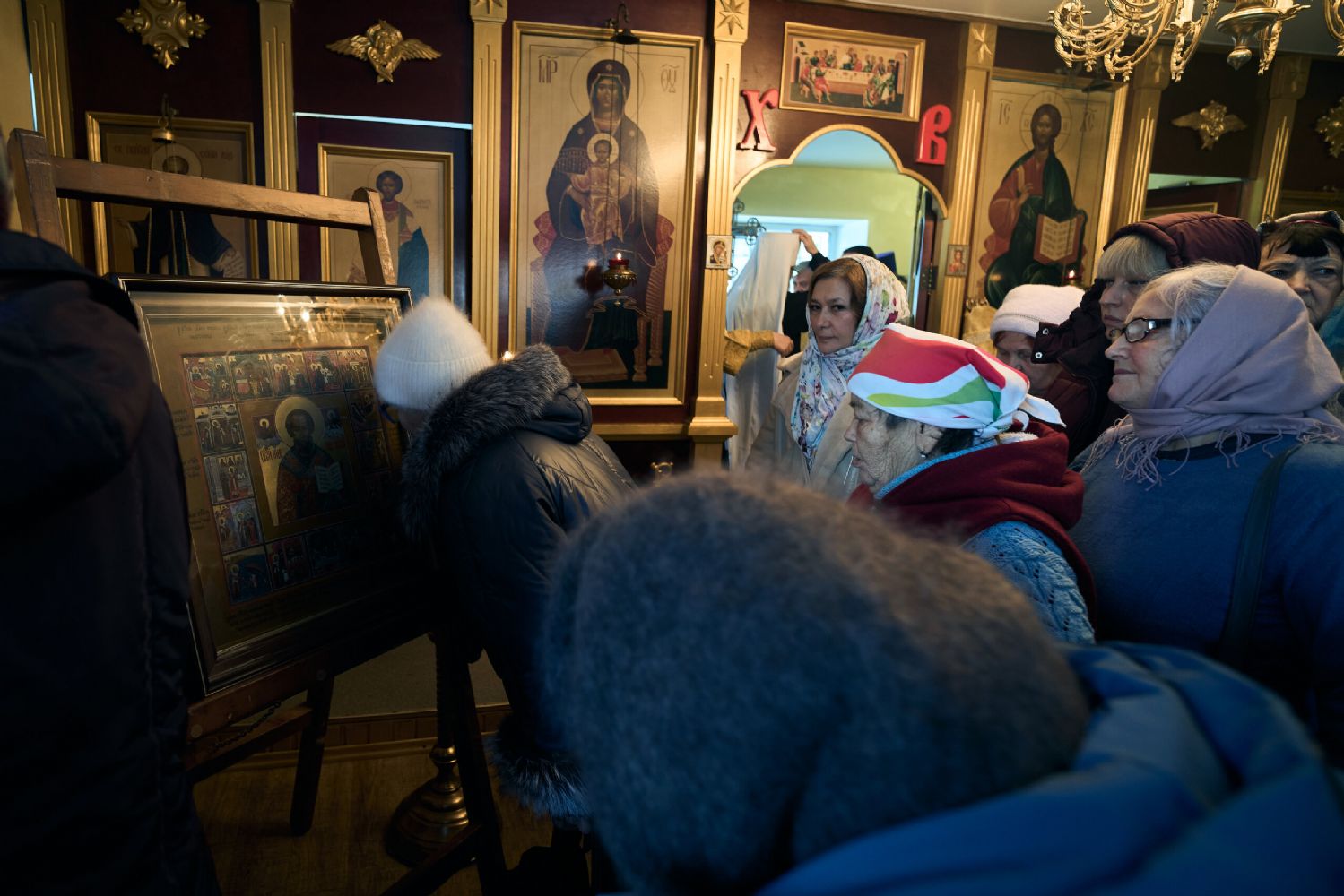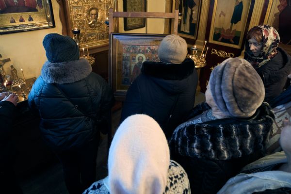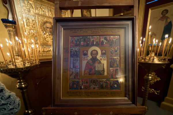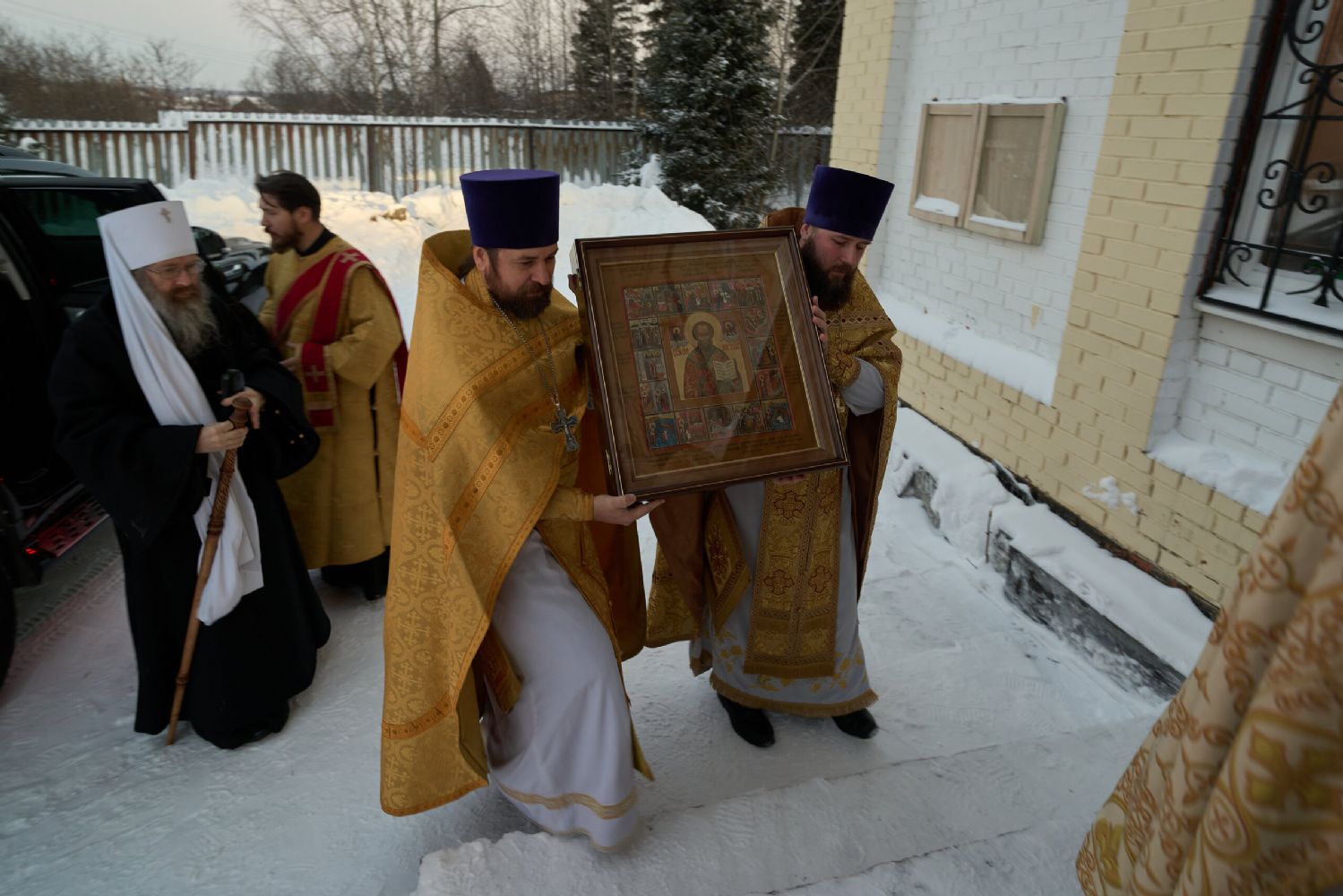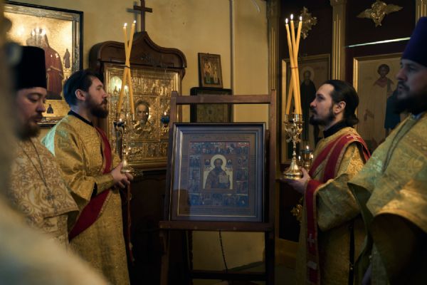 Богослужение было ознаменовано встречей старинной иконы святителя Николая Чудотворца с клеймами, которая накануне прибыла на Томскую землю.