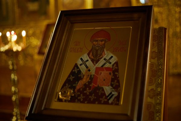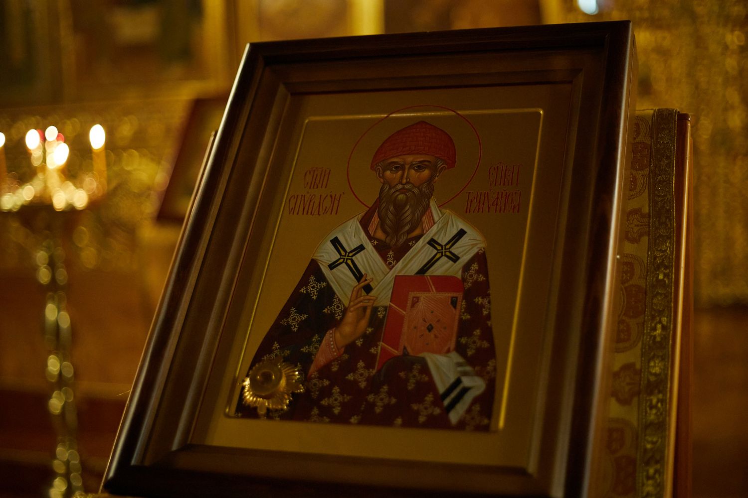 По окончании полиелейного богослужения верующие приложились к иконе святителя Спиридона Тримифунсткого с частицей мощей святого.