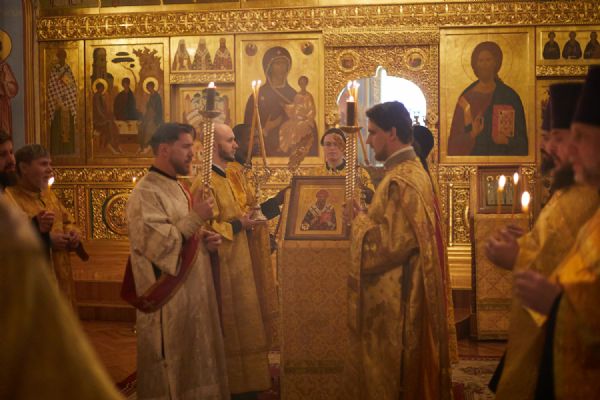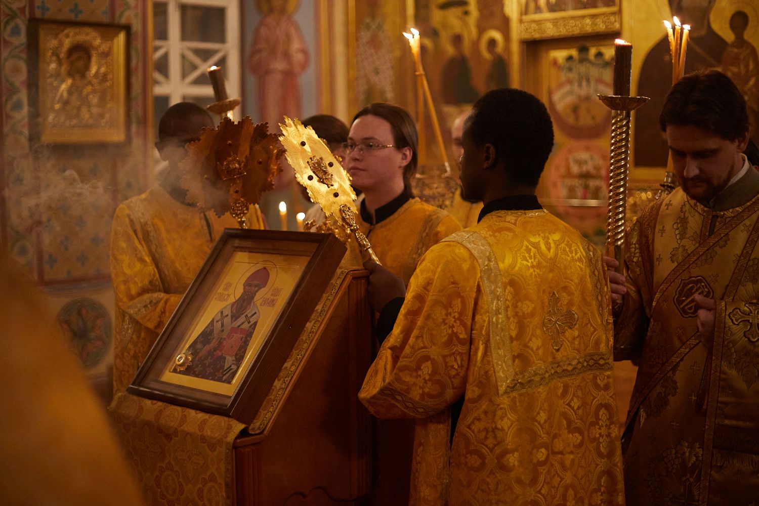 Всенощное бдение накануне дня памяти святителя Спиридона Тримифунтского совершено в Богоявленском кафедральном соборе