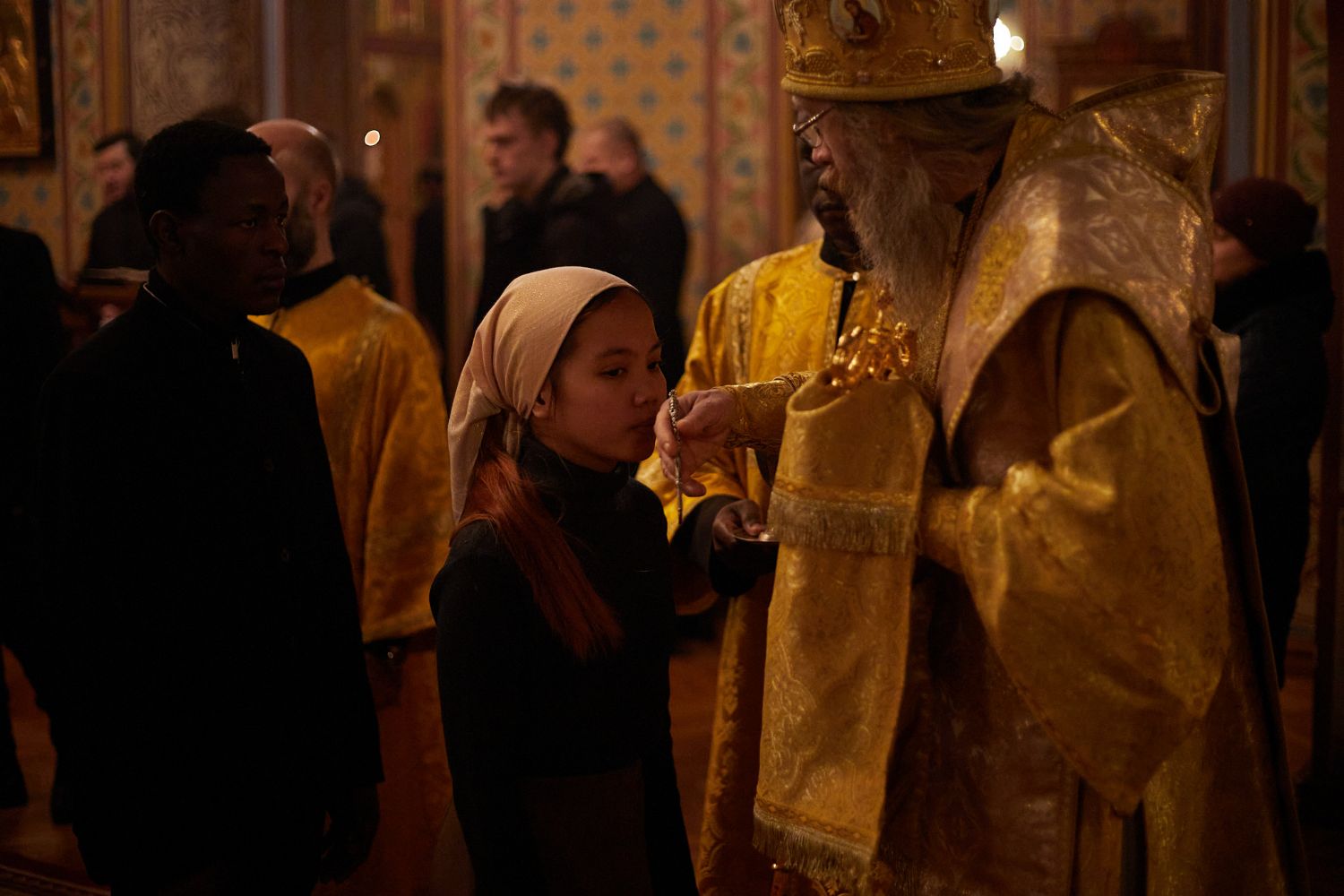 Главе Томской митрополии сослужило духовенство собора. Богослужебные песнопения исполнил хор Томской духовной семинарии под управлением регента Никиты Панкратьева.