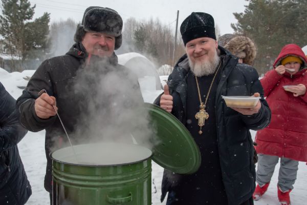 Гости согревались горячим чаем, глинтвейном, кашей с мясом и ароматной ухой.