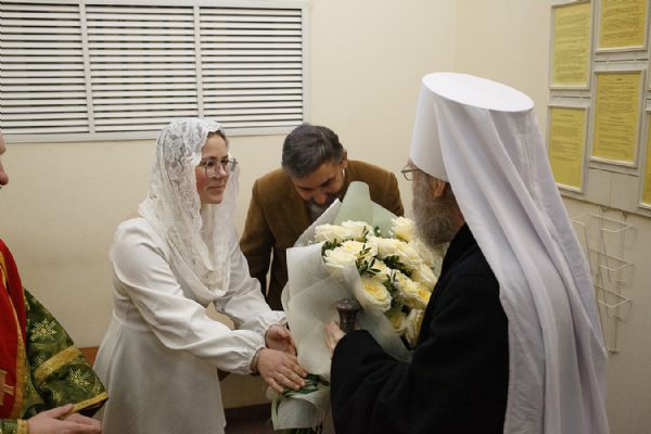 По окончании богослужения Его Высокопреосвященство поздравил всех собравшихся с престольным праздником храма и обратился к ним с архипастырским словом, отметив, что святой Серафим Саровский любим во всем мире – не только в православном, но и в католическом, и в протестантском.