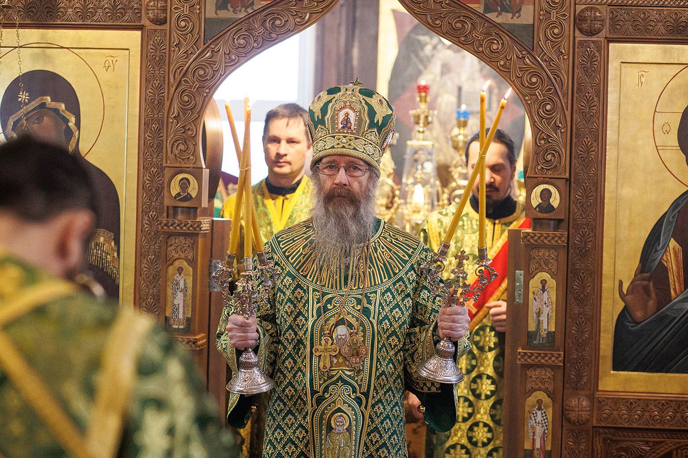 Его Высокопреосвященству сослужили благочинный Градо-Томского благочиния, настоятель храма святого благоверного князя Александра Невского г. Томска протоиерей Сергий Никаноров, благочинный Томского района, настоятель храма Владимирской иконы Божией Матери г. Северска протоиерей Дионисий Степанов, настоятель храма прп. Серафима Саровского г. Северска протоиерей Димитрий Сергеев и настоятель храма апостола Иоанна Богослова г. Томска иерей Дионисий Землянов.