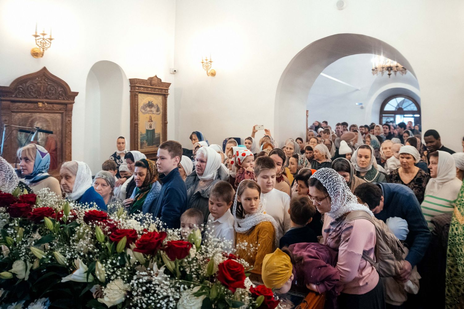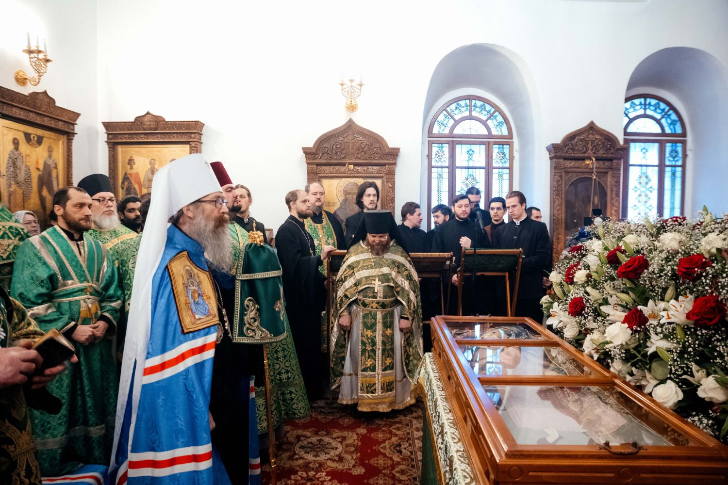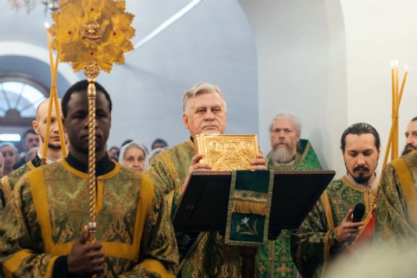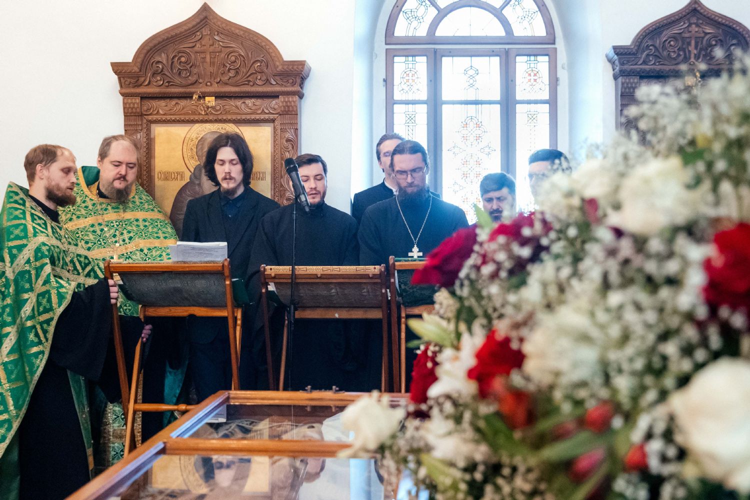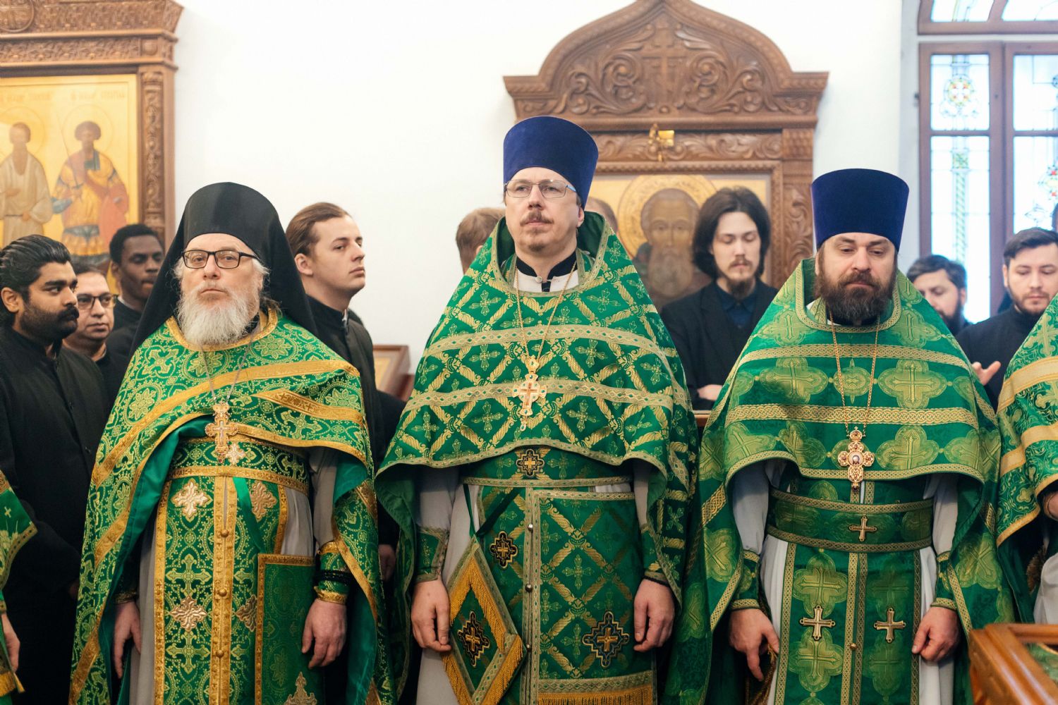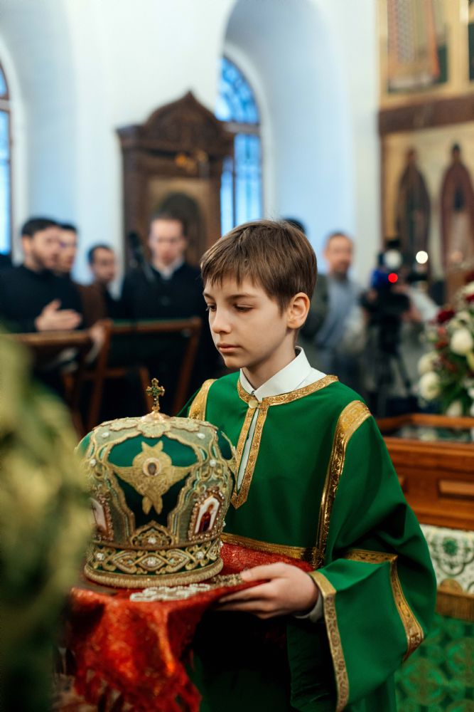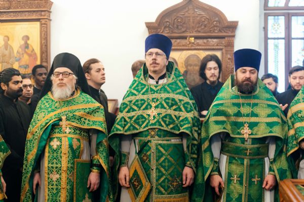 За богослужением пел семинарский хор под управлением регента диакона Никиты Панкратьева и женский хор под управлением регента Игоря Гончарова.