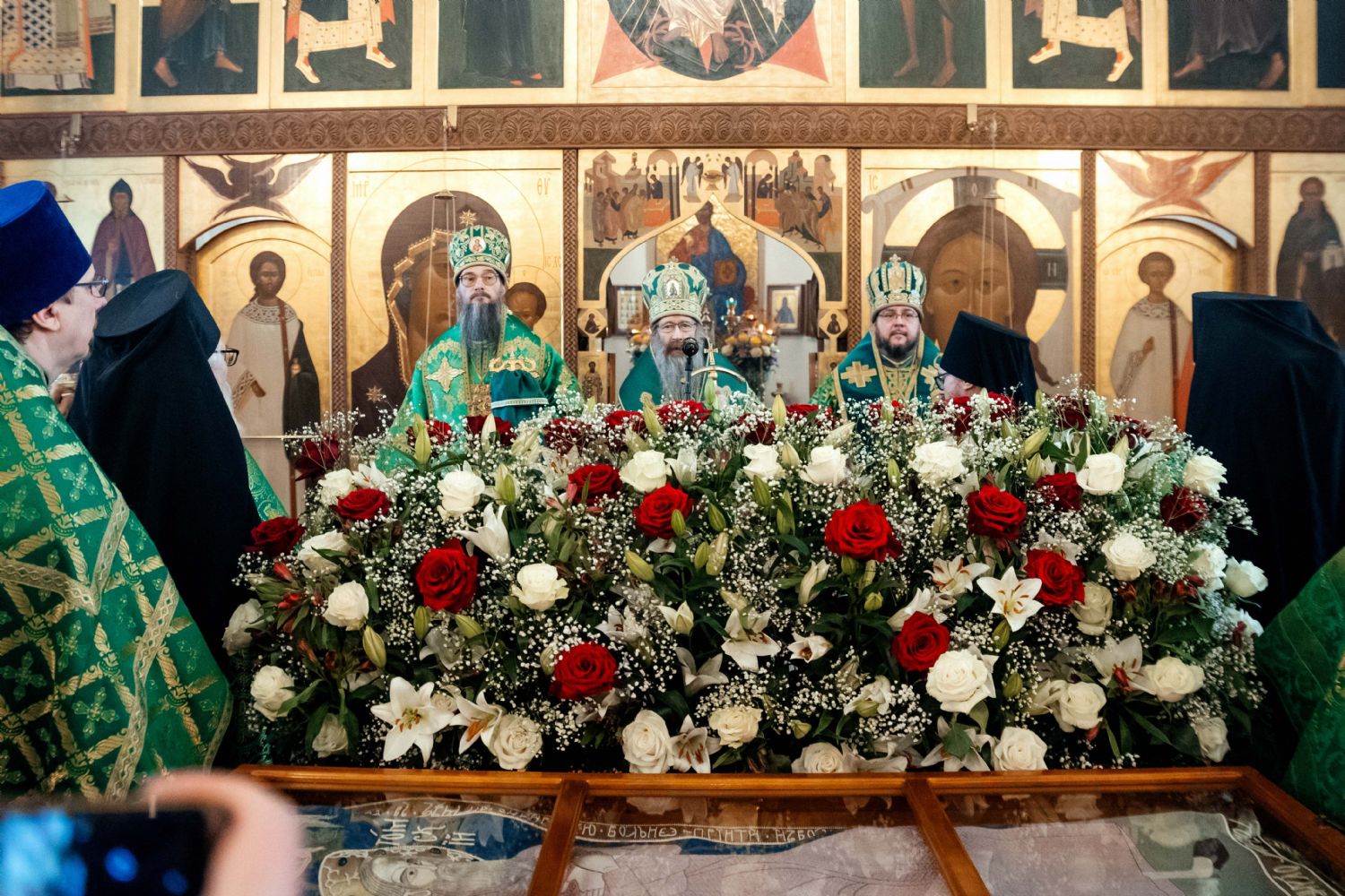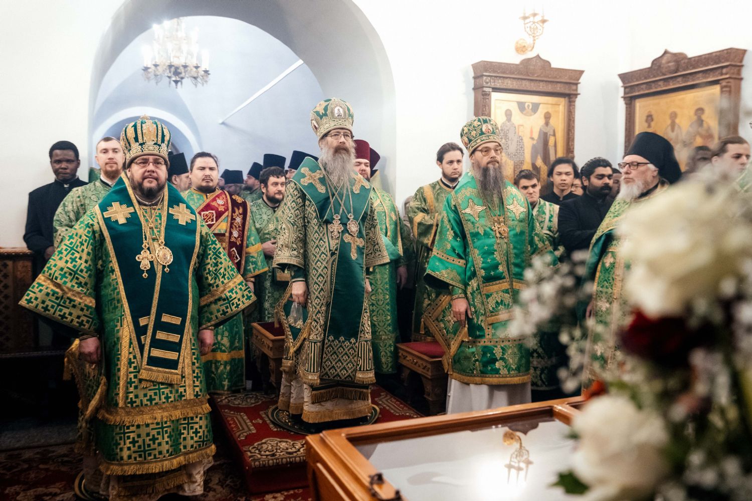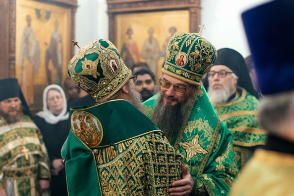 Архипастырям сослужили и.о. игумена обители иеромонах Иов (Коваль) и сонм духовенства Томской епархии.