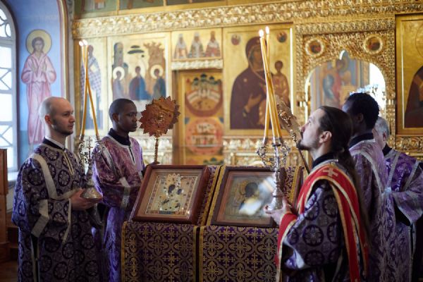 После Литургии был совершен особый Чин Торжества Православия. Эта служба представляет собой торжество Церкви над всеми, когда-либо существовавшими ересями и расколами, в ней утверждаются православное учение об иконопочитании и все догматы и постановления семи Вселенских Соборов, благословляются иконопочитатели и все христиане, живущие и отошедшие ко Господу в вере и благочестии. Кроме того, в этом богослужении провозглашается анафема иконоборцам и всем, кто совершил тяжкие прегрешения перед Церковью.