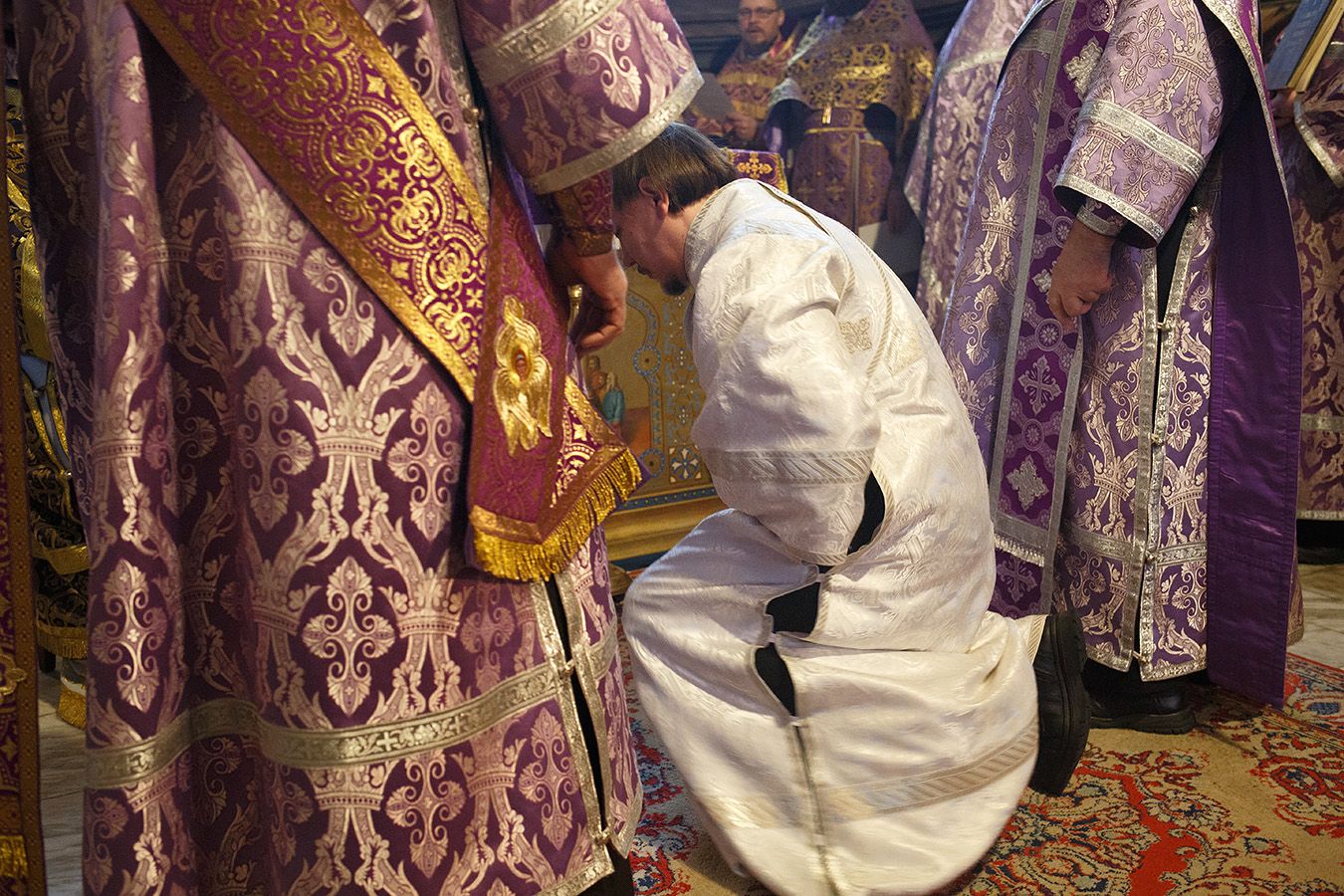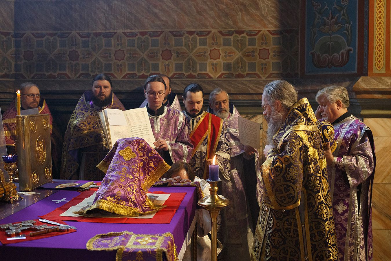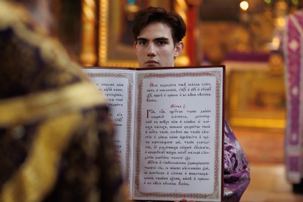 За богослужением была совершена дьяконская хиротония штатного пономаря Петропавловского собора, выпускника ТДС Сироткина Александра.