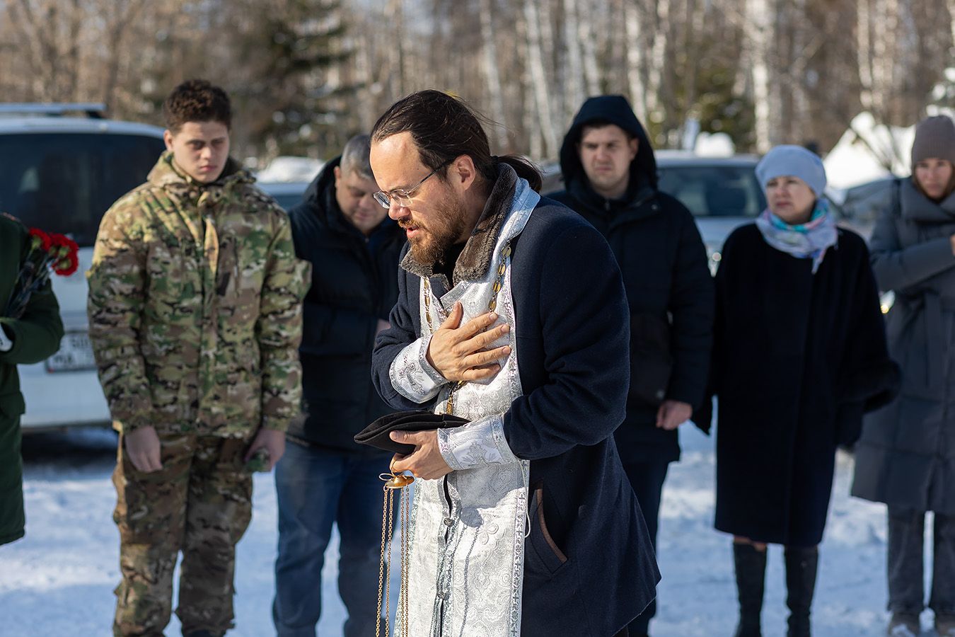 Богослужение совершил настоятель Воскресенской церкви иерей Дионисий Мелентьев. Об упокоение души погибшего молились родные Максима Пескового, учителя и кадеты Томского кадетского корпуса, представители Администрации Томской области, ветераны СВО, волонтёры и томичи, приехавшие в этот день на кладбище почтить память Героя России.