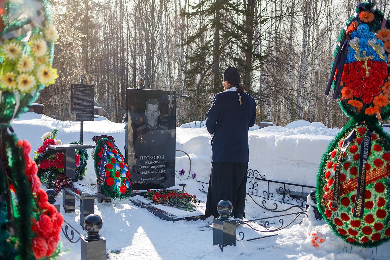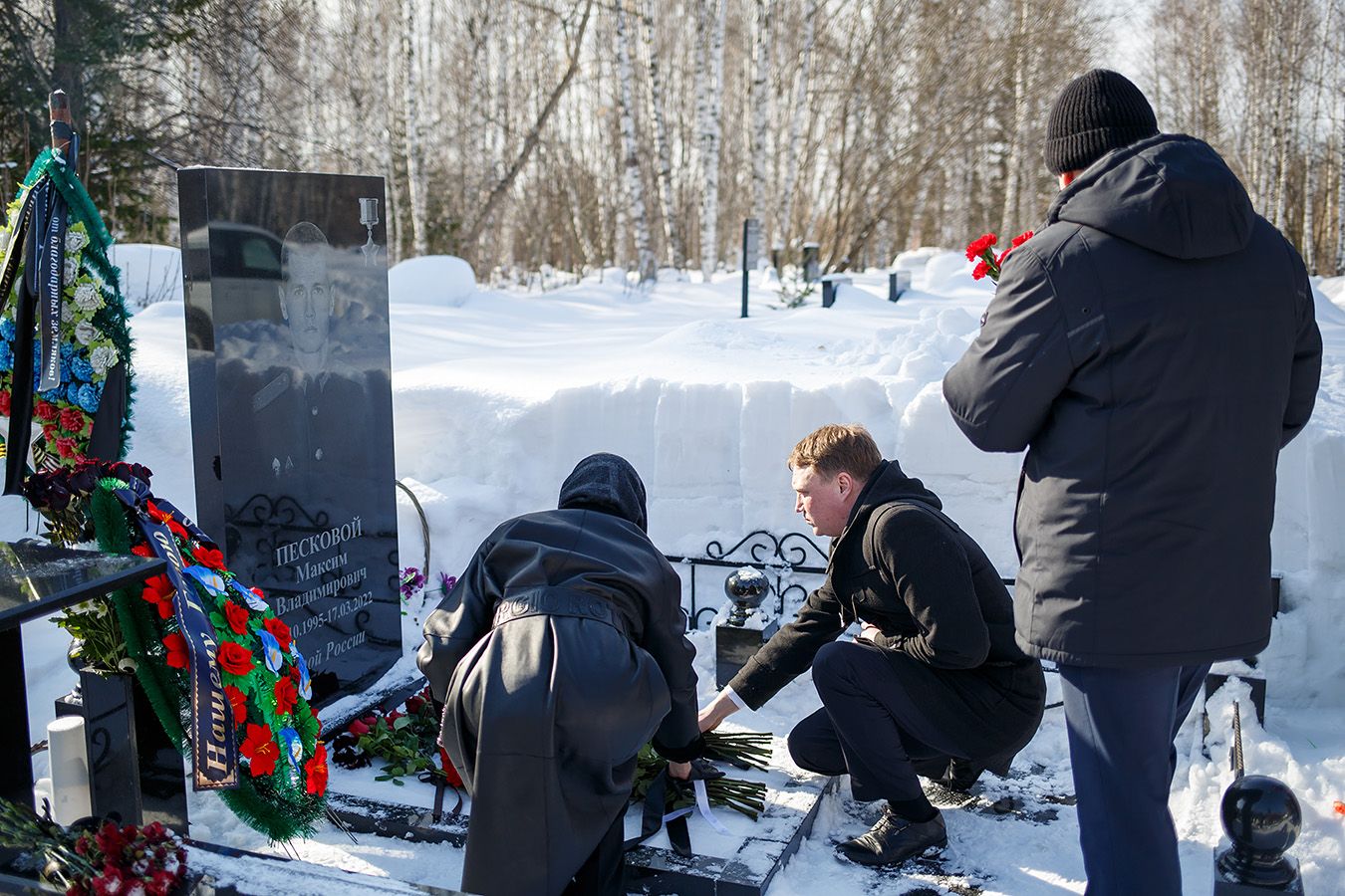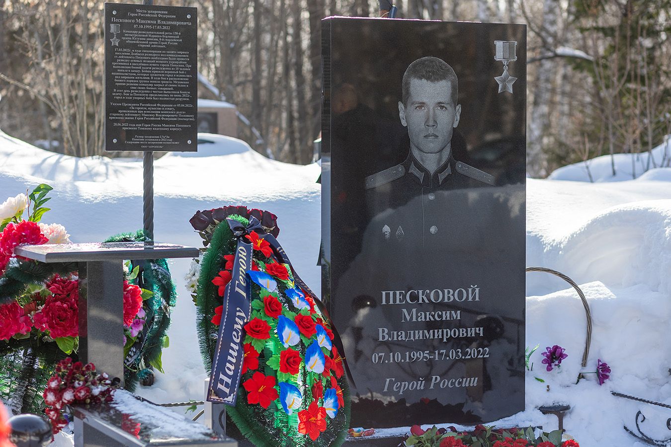 Максима Пескового похоронили 7 апреля 2022 г. рядом с могилой Героя Советского Союза, участника Великой Отечественной войны Геннадия Ворошилова.