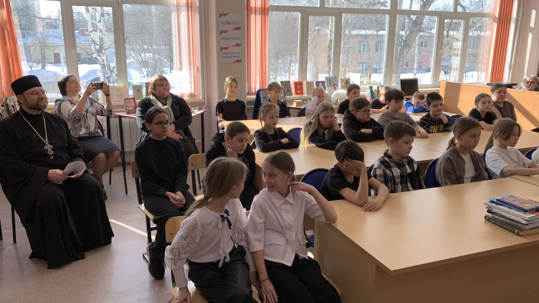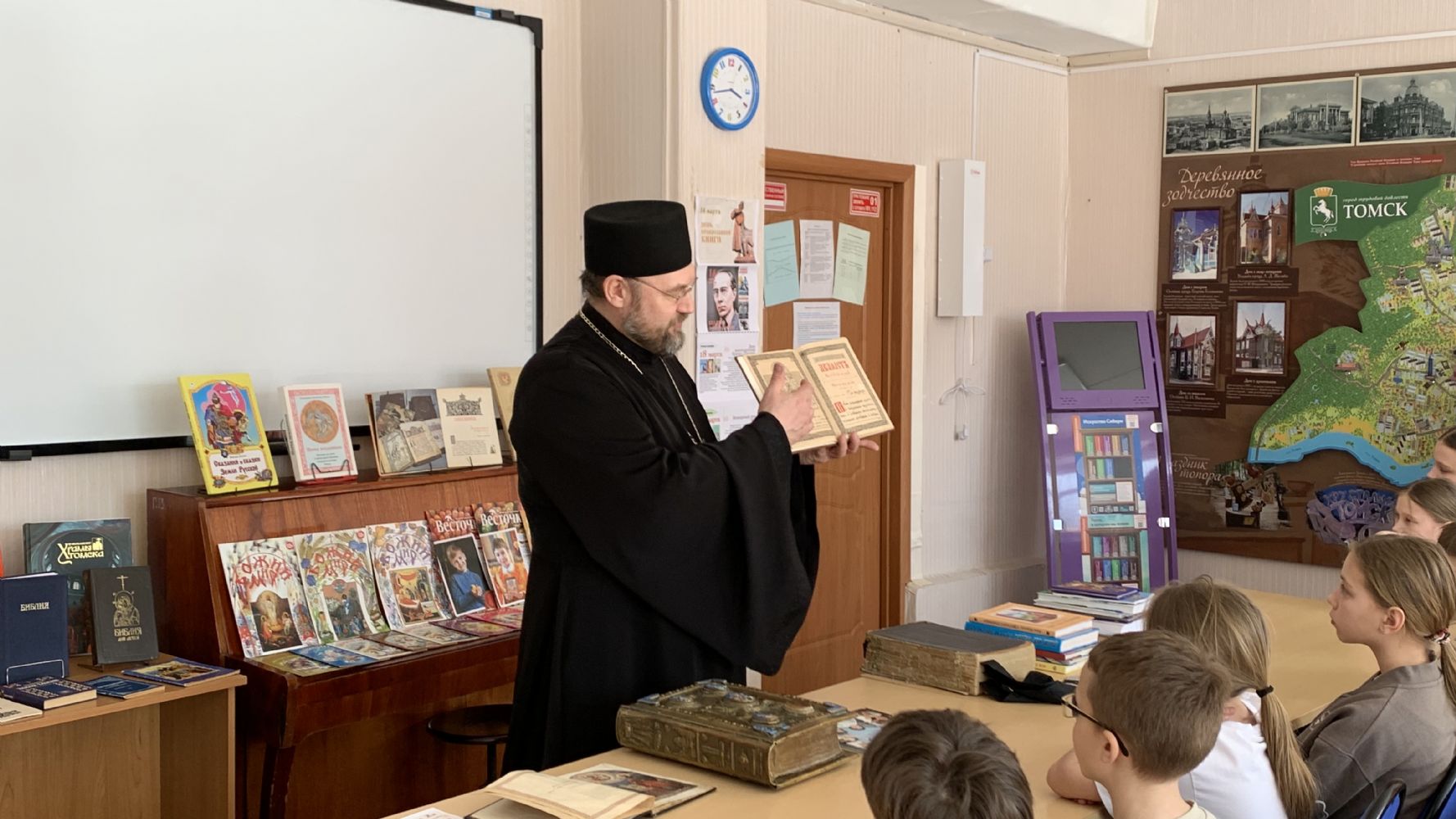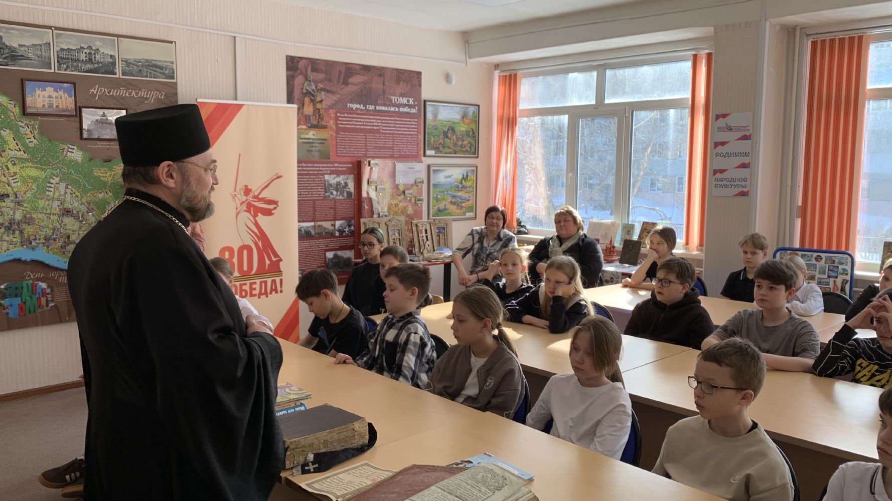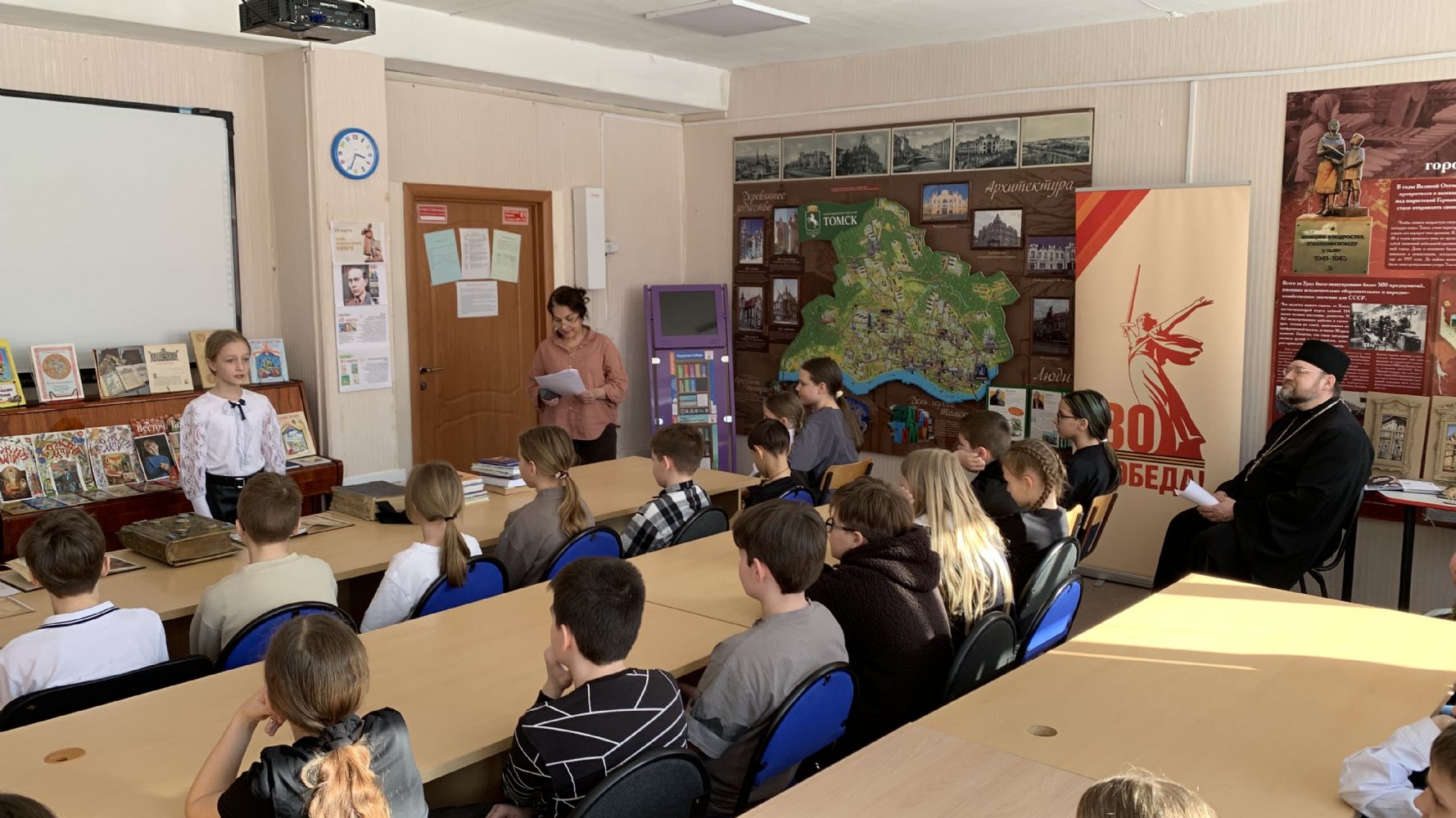 19 марта в 13 Гимназии г.Томска настоятель Свято-Троицкой церкви протоиерей Святослав Зулин провёл три тематических урока среди четвероклассников посвящённых Дню православной книги.