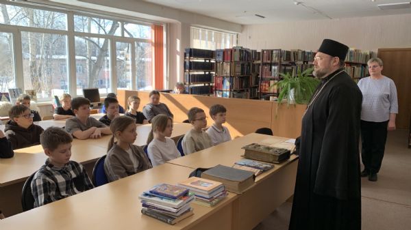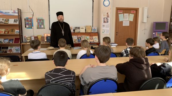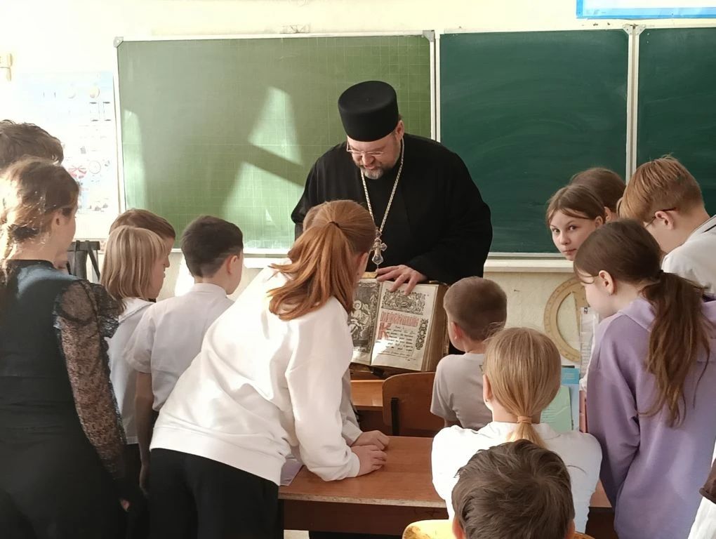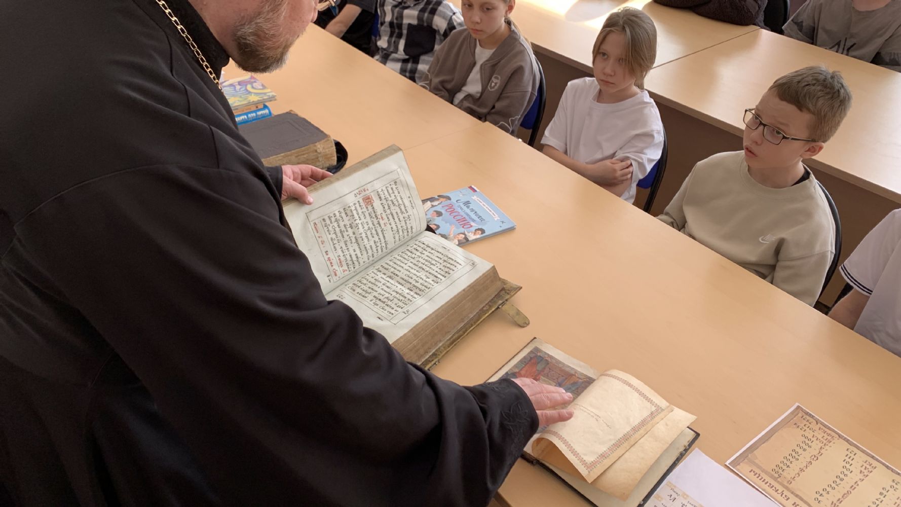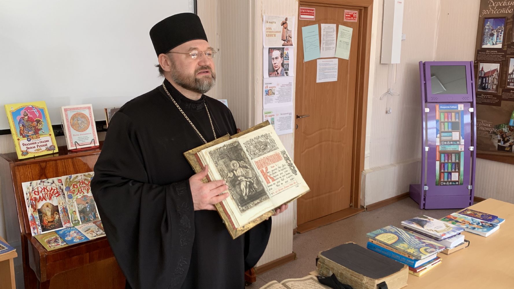 19 марта в 13 Гимназии г.Томска настоятель Свято-Троицкой церкви протоиерей Святослав Зулин провёл три тематических урока среди четвероклассников посвящённых Дню православной книги.