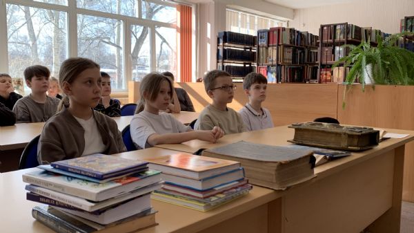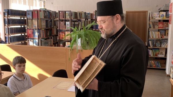 Отец Святослав рассказал ребятам об истории появления первой печатной книги на Руси, о том, как книги пришли на смену средневековым рукописям. Ребята узнали, каковы особенности русской азбуки, как при помощи букв кириллицы можно записать числа, подержали в руках старинные книги.