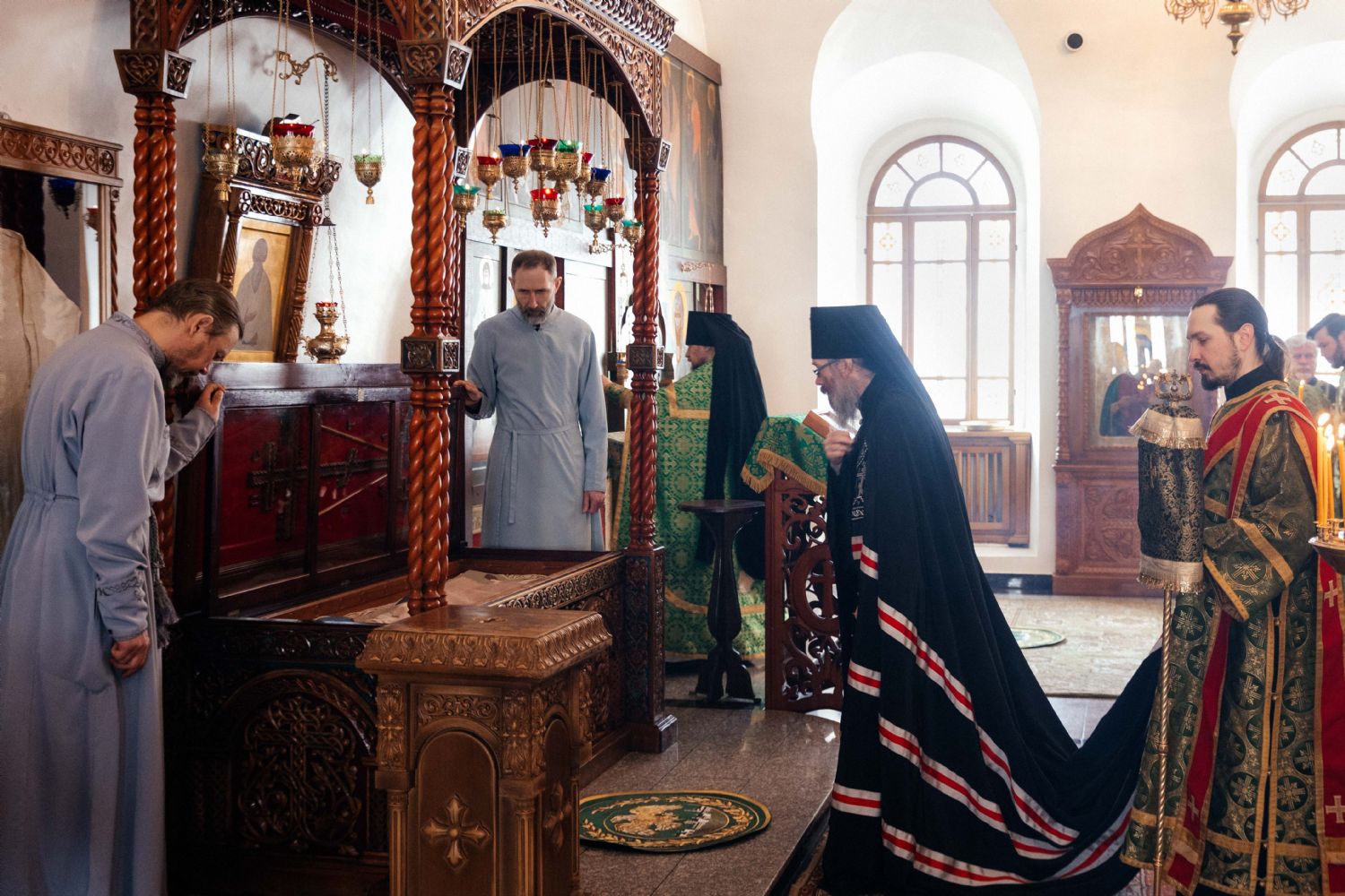 Его Высокопреосвященству сослужили благочинный Первого Градо-Томского благочиния протоиерей Сергий Никаноров, игумен монастыря иеромонах Иов (Коваль), протодиакон Владимир Марков, духовенство обители и Богоявленского собора г. Томска.