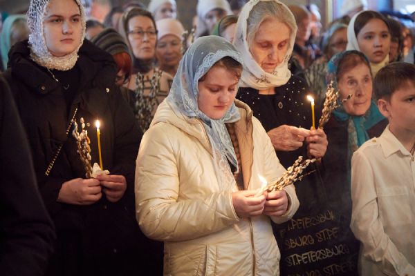 Накануне праздника Входа Господня в Иерусалим совершено Всенощное бдение в Богоявленском соборе