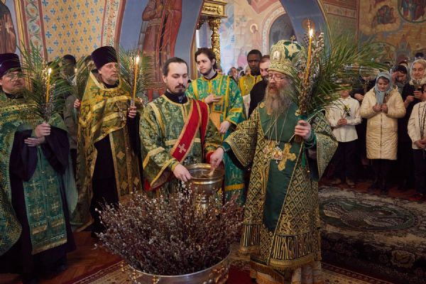 На утрени, после прочтения евангельского зачала, митрополит Ростислав совершил чин освящения ваий — ветвей вербы и ивы, которые символизируют торжественный вход Господа Иисуса Христа в Иерусалим на вольные Страдания. Во время чтения 50-го псалма архипастырь совершил каждение ваий, прочитал молитву на их благословение: «Господи Боже наш, седяй на Херувимех…» и окропил ветви, принесенные молящимися, святой водой, произнеся: «Освящаются ваия сия, окроплением воды сея священныя, во имя Отца и Сына и Святаго Духа».