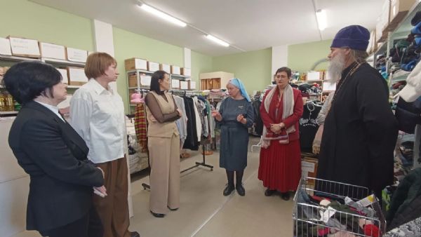 В рамках встречи высокие гости посетили епархиальный Гуманитарный центр. Здесь добровольцы оказывают продуктовую и вещевую помощь в кризисной ситуации многодетным семьям, малоимущим подопечным, одиноким родителям, воспитывающим детей.