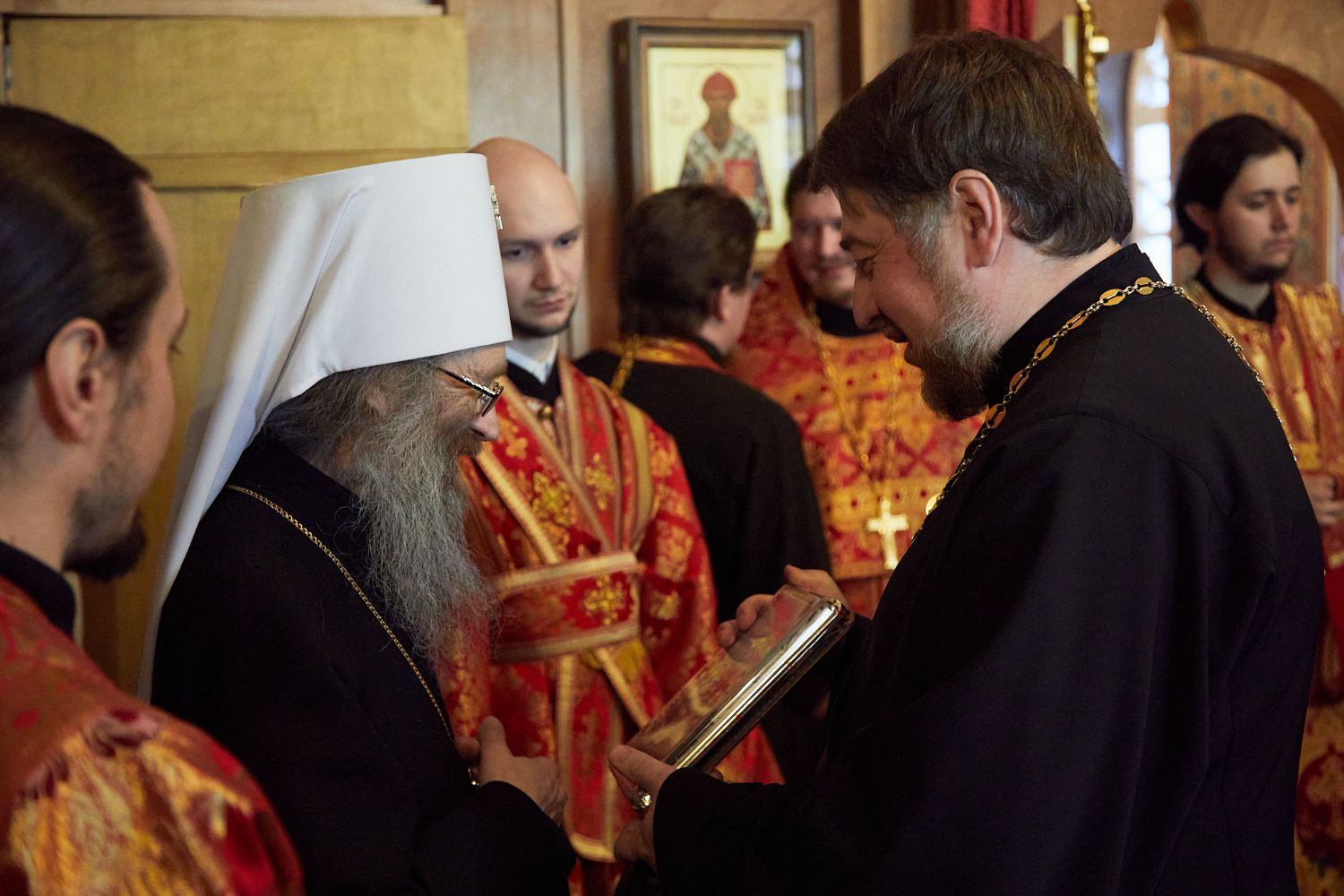 Наперсные кресты были вручены настоятелю храма святителя Николая с. Зырянского Томской области иерею Федору Евдокимову и штатному священнику храма Святой Троицы г. Томска иерею Владимиру Смирнову.