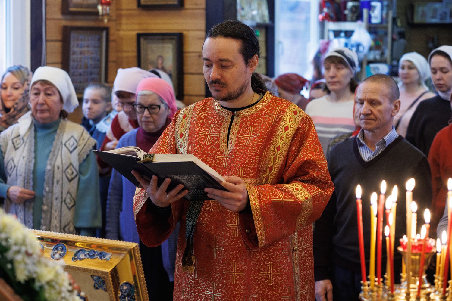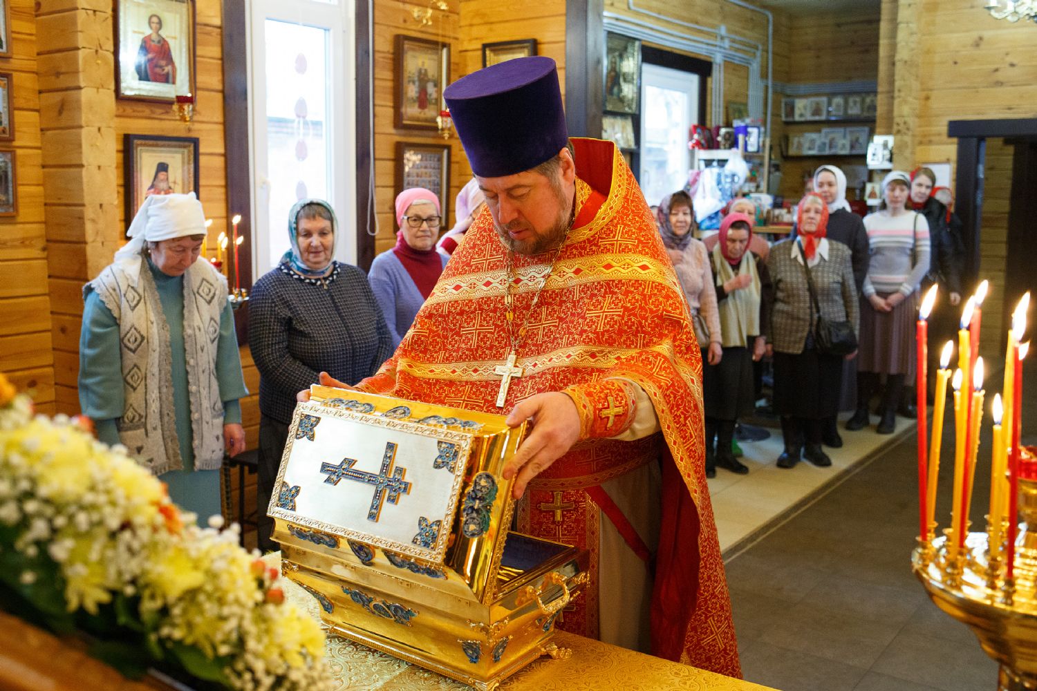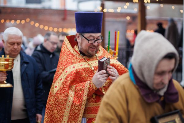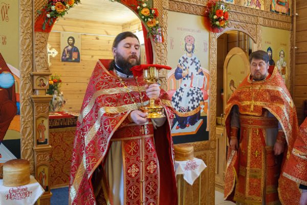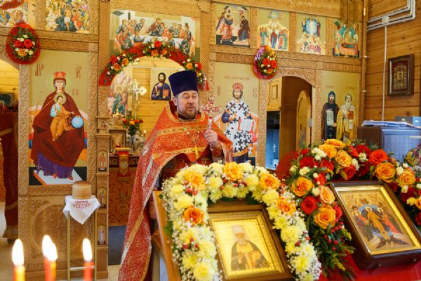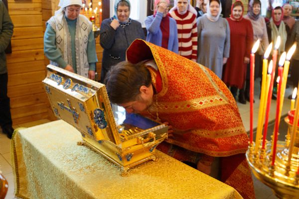 В храме была совершена праздничная Божественная литургия, крестный ход вокруг храма и молебен у ковчега с мощами. Прихожане храма приложились к святыне.