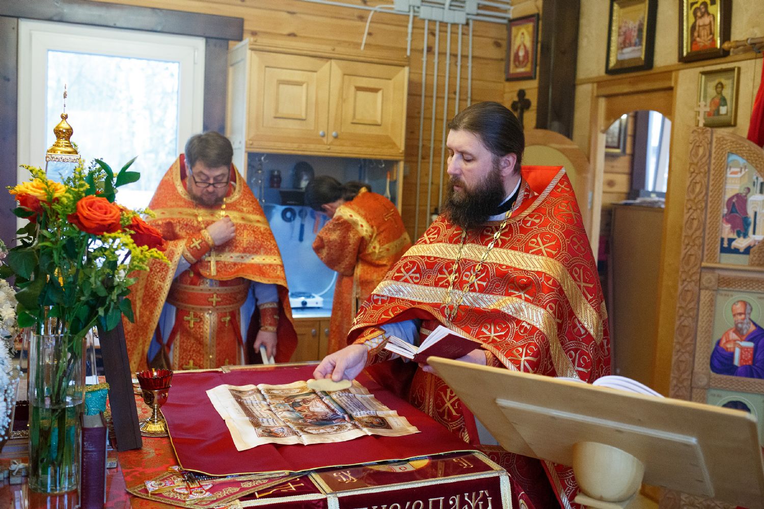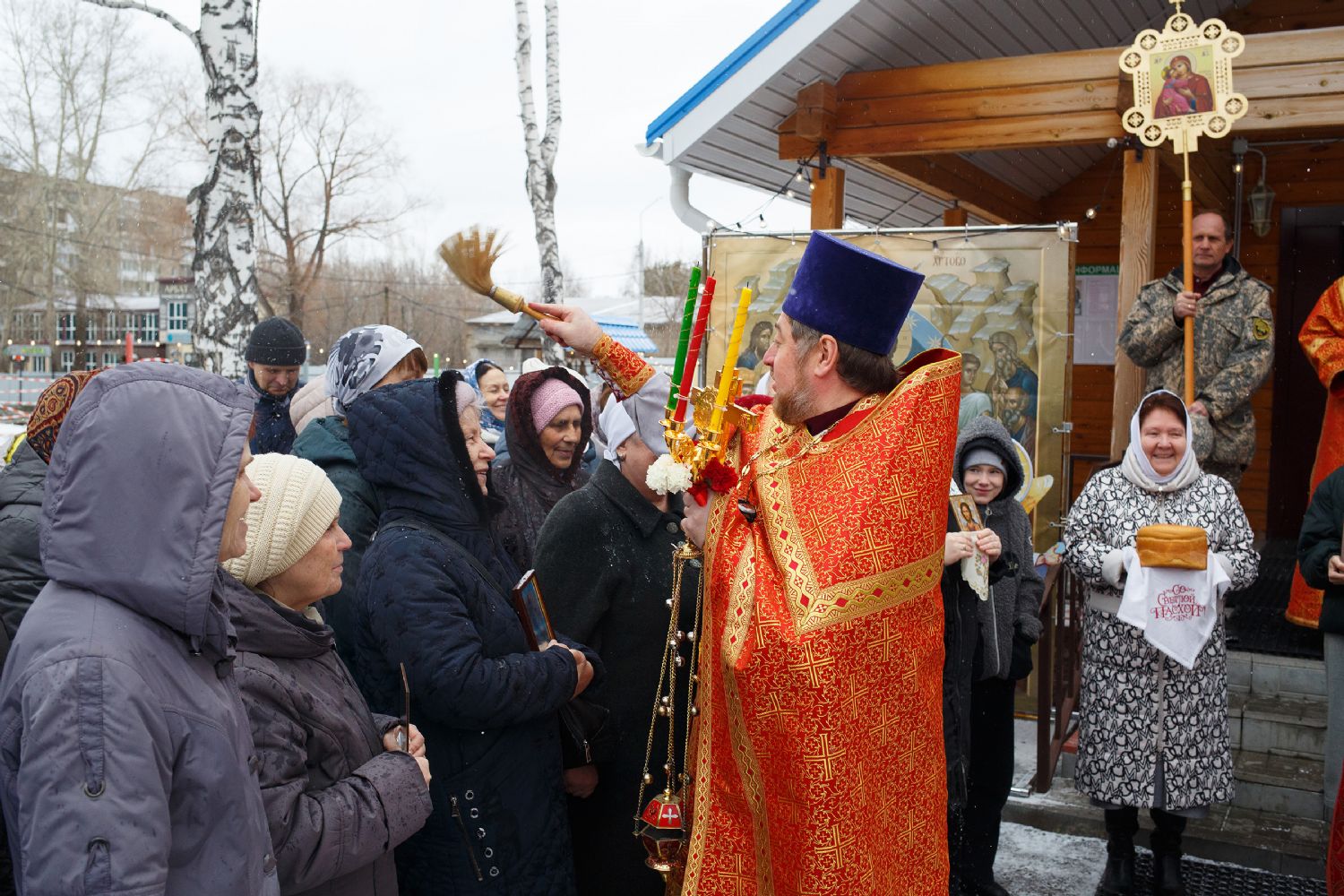 Ковчег с десницей святого доставил в храм перед Литургией благочинный Градо-Томского благочиния протоиерей Сергий Никаноров. Святыня была встречена множеством прихожан и настоятелем иереем Максимом Темняковым.