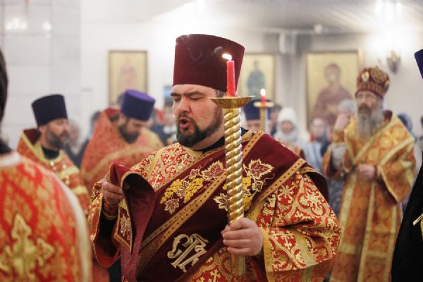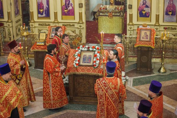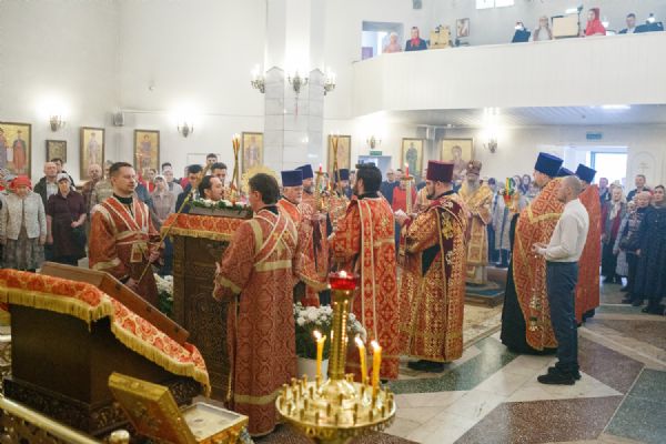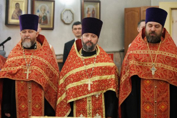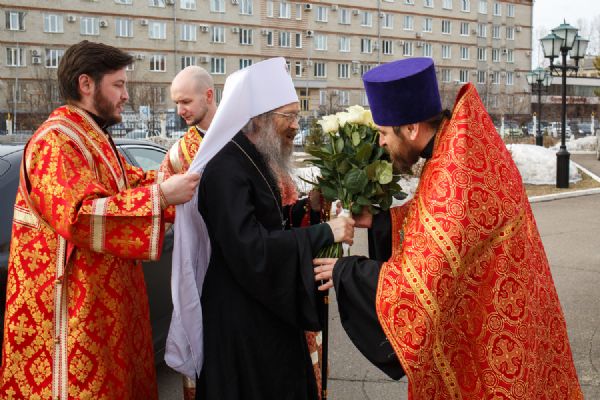 Митрополиту Томскому и Асиновскому Ростиславу сослужил настоятель храма Владимирской иконы Божией Матери протоиерей Дионисий Степанов, духовенство храма, а также настоятель храма прп. Серафима Саровского, г. Северска протоиерей Дмитрий Сергеев. Диаконский чин возглавил протодиакон Владимир Марков.