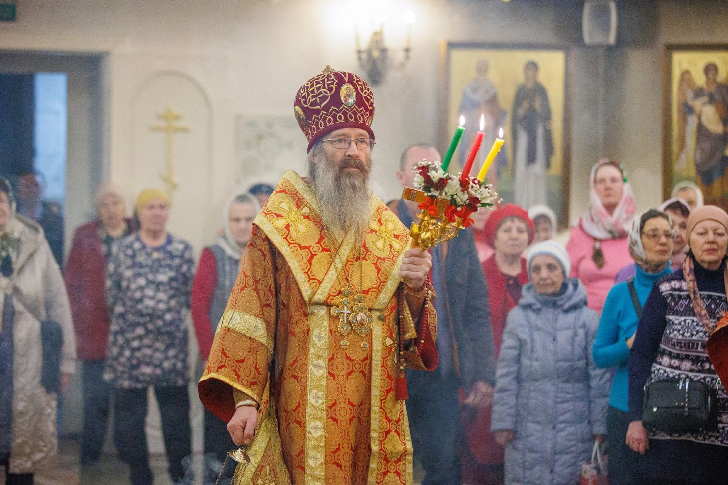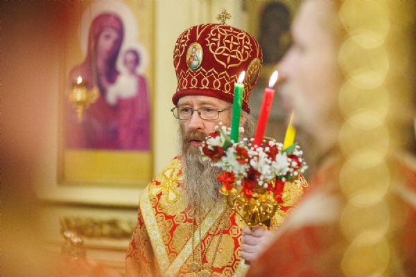 Многочисленные северчане, молившиеся за вечерним богослужением, громоглассно отвечали архипастырю на пасхальное приветствие: "Воистину Воскресе!".