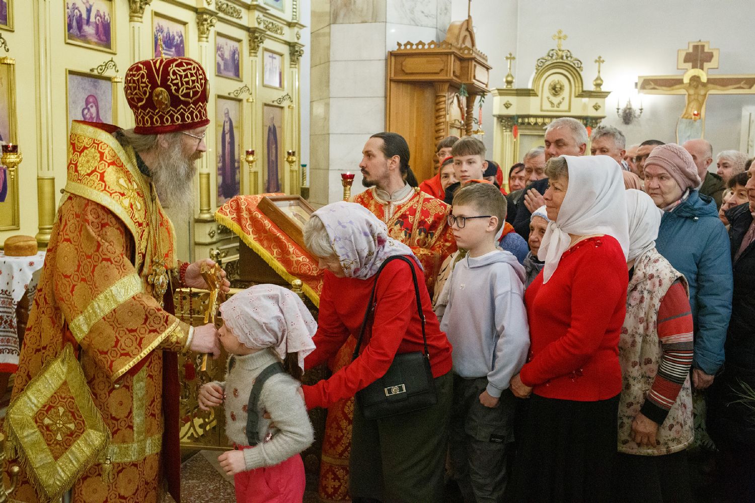Верующие ответили митрополиту Ростиславу: "Воистину Воскресе!" и приложились к Кресту Господню, находящемуся в руках Его Высокопреосвященства.