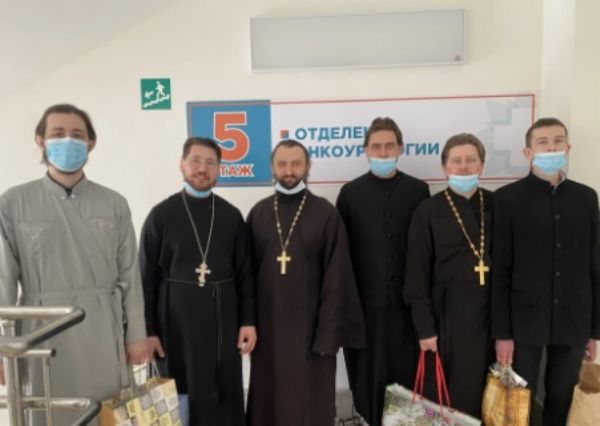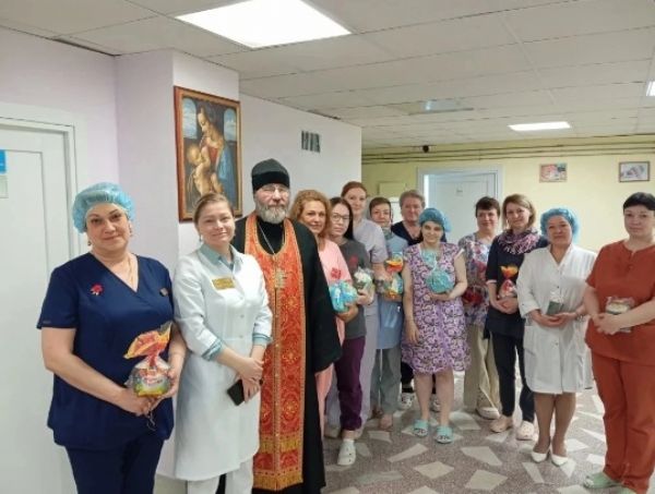 Богоявленский приход поздравил с Воскресением Христовым около 700 пациентов и сотрудников онкодспансера, более 300 человек, находящихся на лечении в двух городских поликлинических отделениях, а также сотрудников медицинской лаборатории.