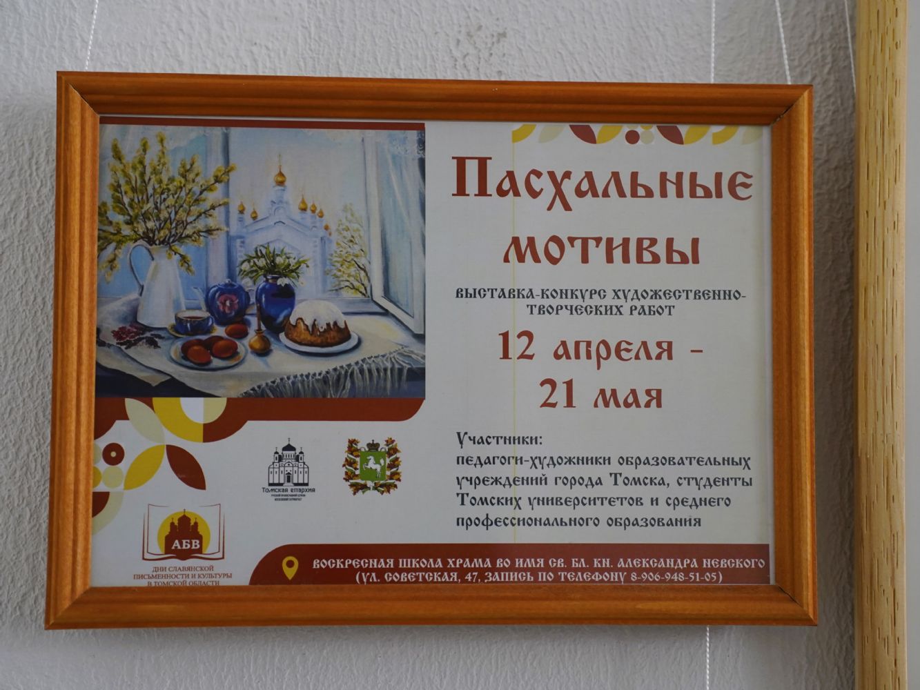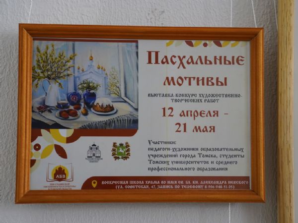 По благословению благочинного Градо-Томского благочиния, настоятеля нашего храма протоиерея Сергия Никанорова, выставка была организована в рамках пасхальных мероприятий Томской епархии при соработничестве с педагогами-художниками, студентами среднего профессионального образования, Института искусств и культуры ТГУ, а также факультета культуры и искусств ТГПУ.