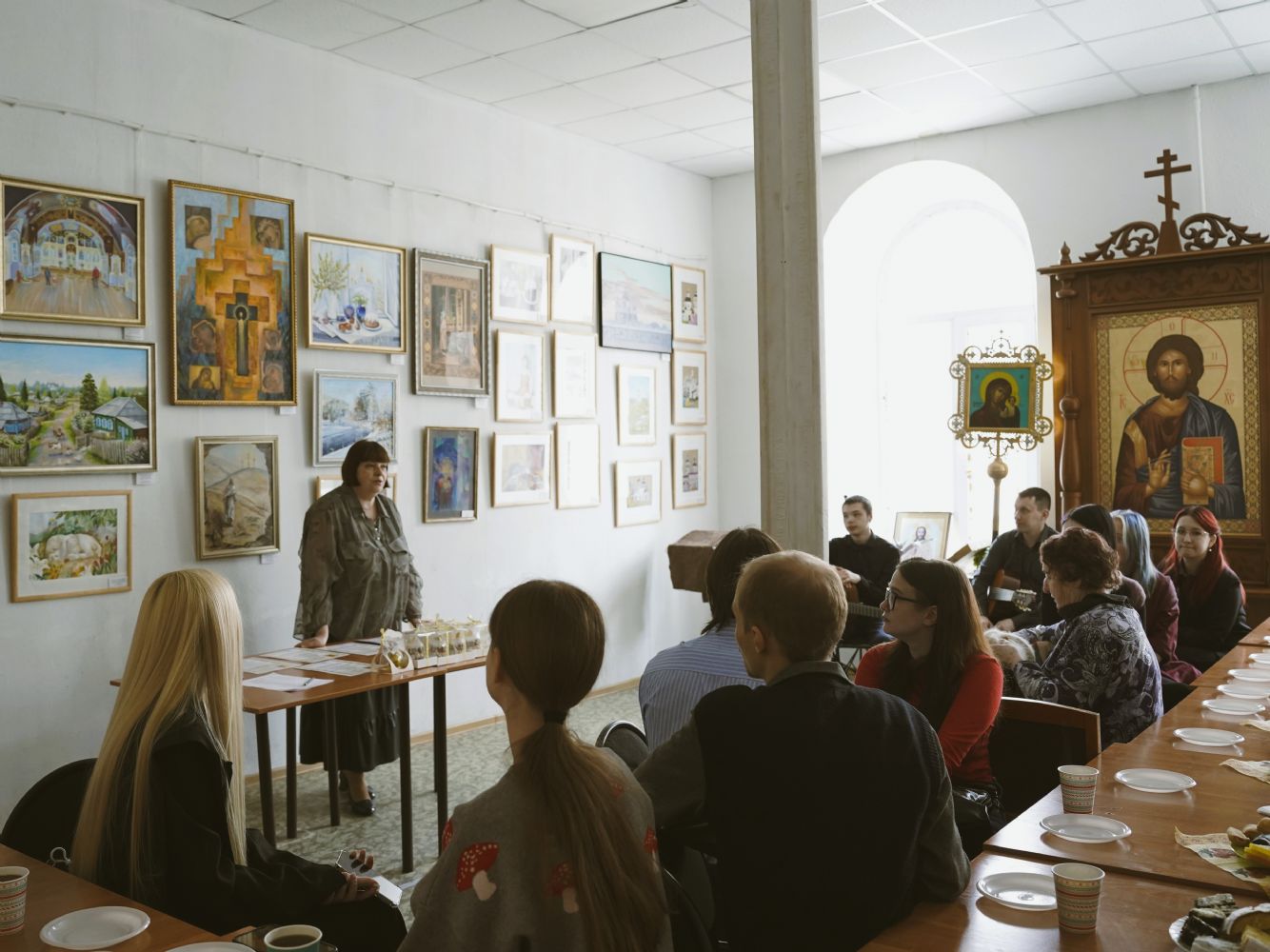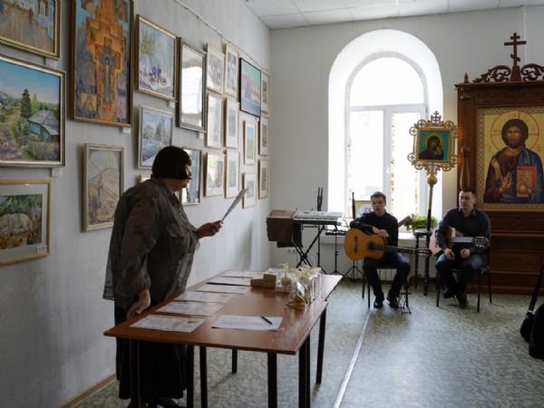Открытие выставки прошло в формате творческой гостиной. Мероприятие пришлось на субботний день Светлой седмицы, что придало ему особую пасхальную радость. Действие развивалось по литературно-музыкальному сценарию.