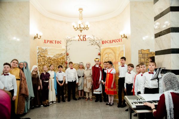 Пасхальное представление "Слепая принцесса Фавста" в исполнении детей никого не оставило равнодушным. Зрители вместе с актерами вновь пережили трагизм Страстей Христовых и славу Воскресшего Господа. Сцены с актерами сменялись теневым театром, песнями и стихотворениями, наполненными глубоким смыслом Праздника праздников.