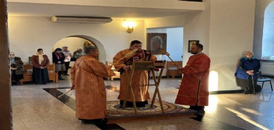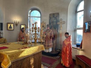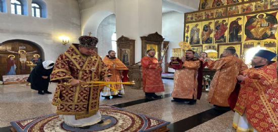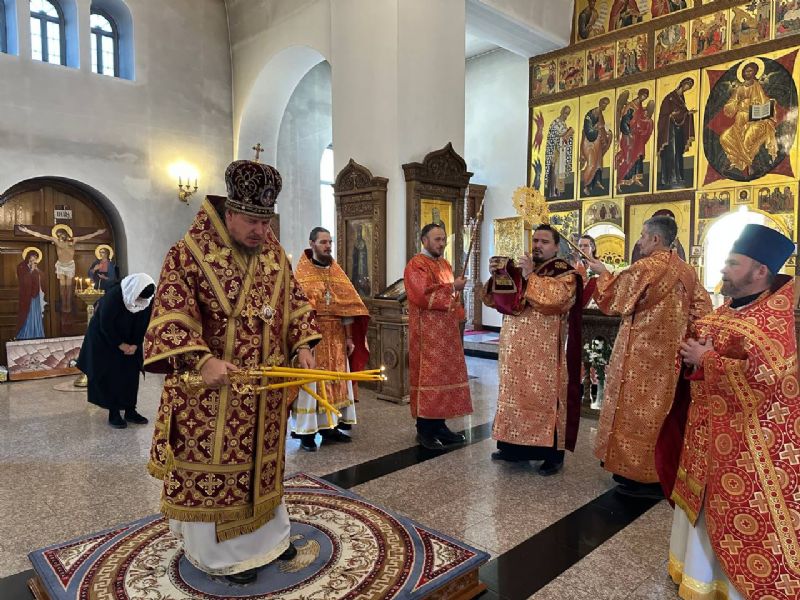 По благословению владыки в ходе богослужения впервые прозвучали песнопения и молитвословия в честь Собора новомучеников и исповедников Нарымских.