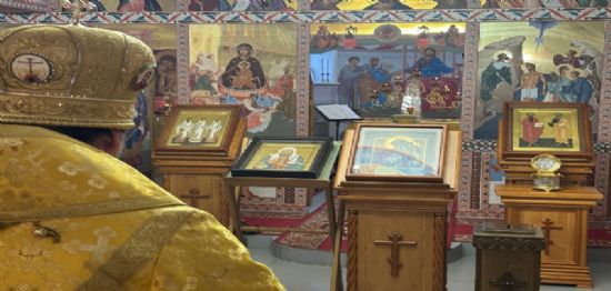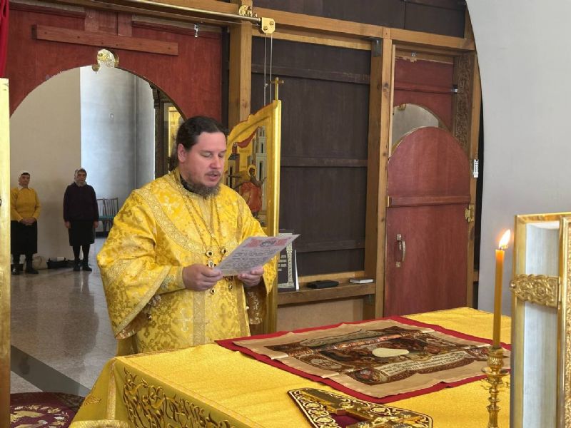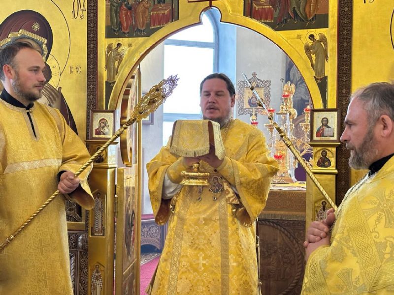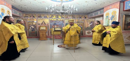 Накануне вечером было совершено Всенощное бдение, за которым во время полиелея епископом Филаретом была освящена новописанная икона святителя Тихона, патриарха Московского и всея Руси.
