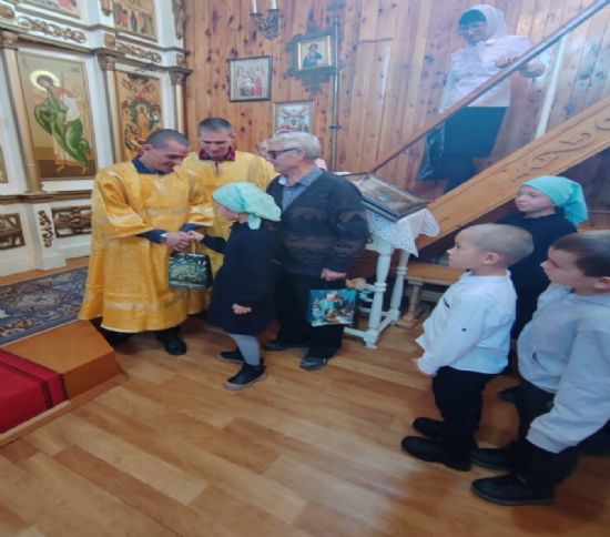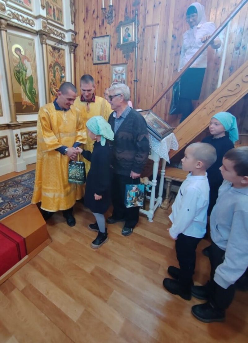 Воспитанники воскресной школы поздравили глав семейства трогательными стихотворениями с пожеланиями здоровья, счастья, бодрости и оптимизма. Поблагодарили за любовь, душевное тепло, заботу и поддержку. Каждому мужчине был вручен небольшой подарок.