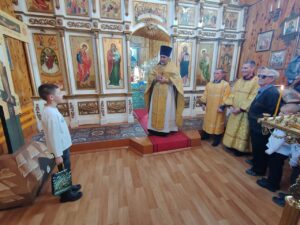 В храме Успения Божией Матери с. Бакчар по окончании богослужения иерей Олег Молофеев поздравил мужчин прихода с праздником. Батюшка пожелал им с Божьей помощью гордо нести звание отца семейства, труженика, кормильца, любящего родителя, ведь отец – это друг, помощник и наставник. Быть всегда примером в семейной жизни для своих детей.