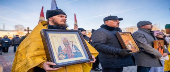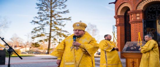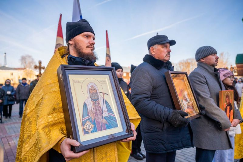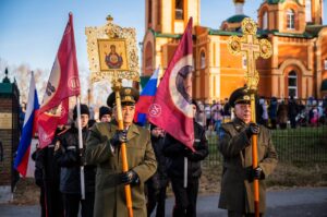 После окончания Божественной литургии был совершен общегородской крестный ход «Молитвенный щит», который предварялся совершением молебна с вознесением особых прошений об Отечестве и воинстве.
