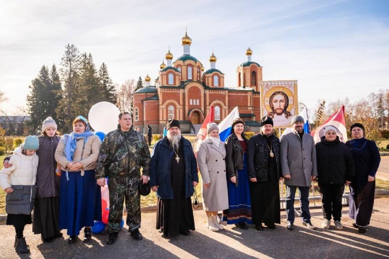 По завершении шествия на площади возле собора был организован патриотический концерт с участием творческих коллективов города и Вознесенского собора, прозвучали слова приветствия, поддержки и поздравления от епископа Филарета, Главы района, волонтеров и многих гостей. Работали пункты плетения маскировочных сетей и сбора пожертвований для помощи воинам.