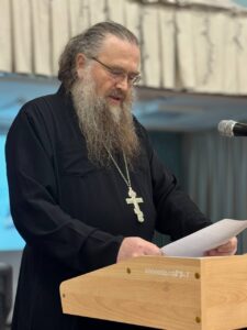 После вступительных слов было представлено приветственное видеообращение епископа Колпашевского и Стрежевского Филарета, а затем поздравить всех присутствующих с открытием этапа Макариевских чтений поспешила Глава города Кедрового Соловьева Нелли Александровна. Особым гостем для всего школьного сообщества стал новоназначенный настоятель храма преподобного Сергия Радонежского г. Кедрового иеромонах Онисифор (Миллер), который рассказал о личности святителя Макария (Невского), просветителя Томской земли, «Апостола Алтая», о его деятельности и подвижнических трудах в деле просвещения, развития образования в Сибири, оставившего богатое наследие в области духовно-нравственного воспитания.