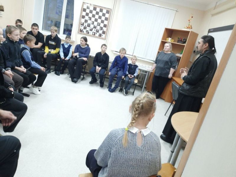 В ходе своего визита священнослужитель посетил местную Мыльджинскую школу, где провел с учащимися небольшую беседу о смысле жизни и значении православной веры.